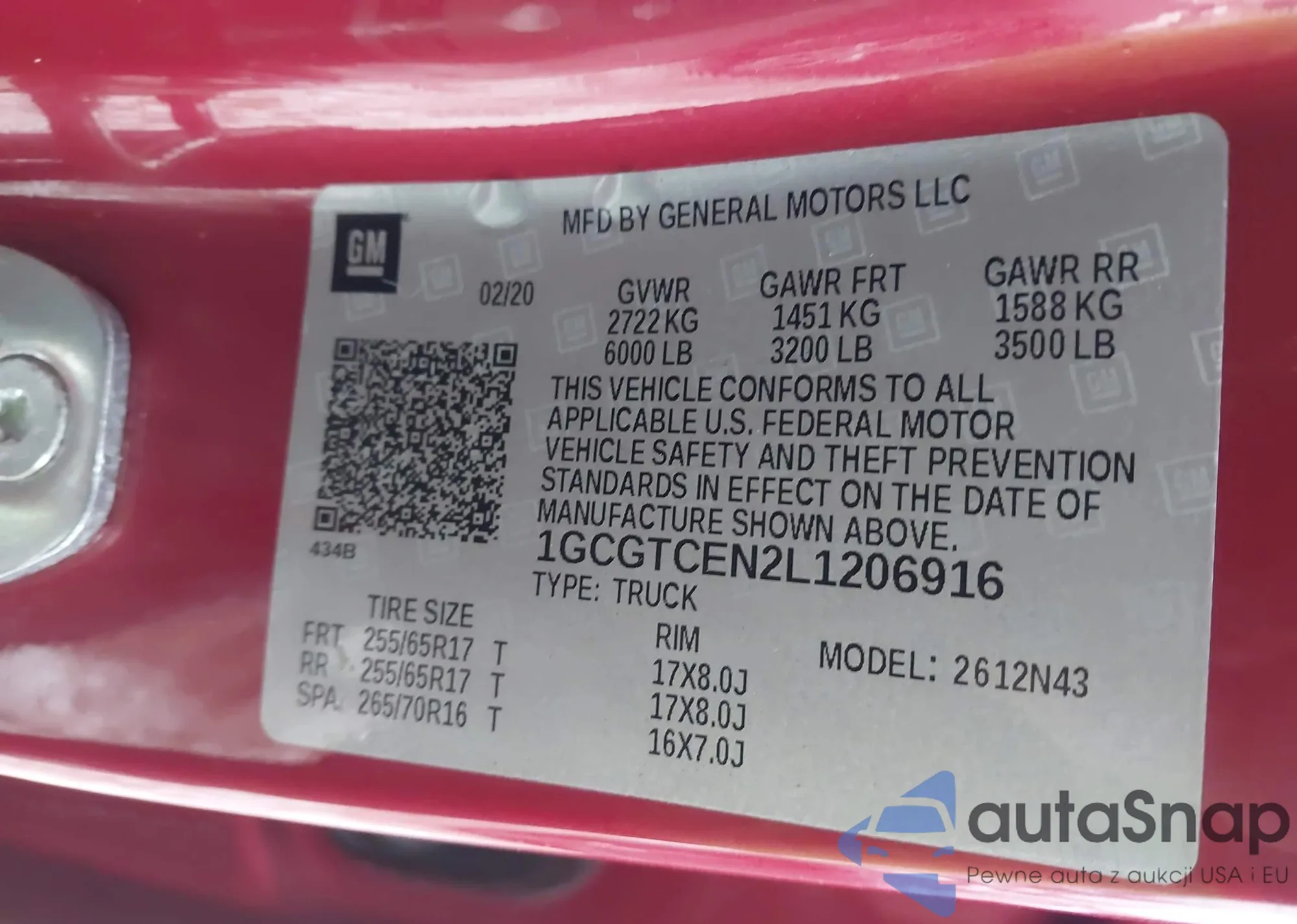 LOT: 44109570 VIN: 1GCGTCEN2L1206916