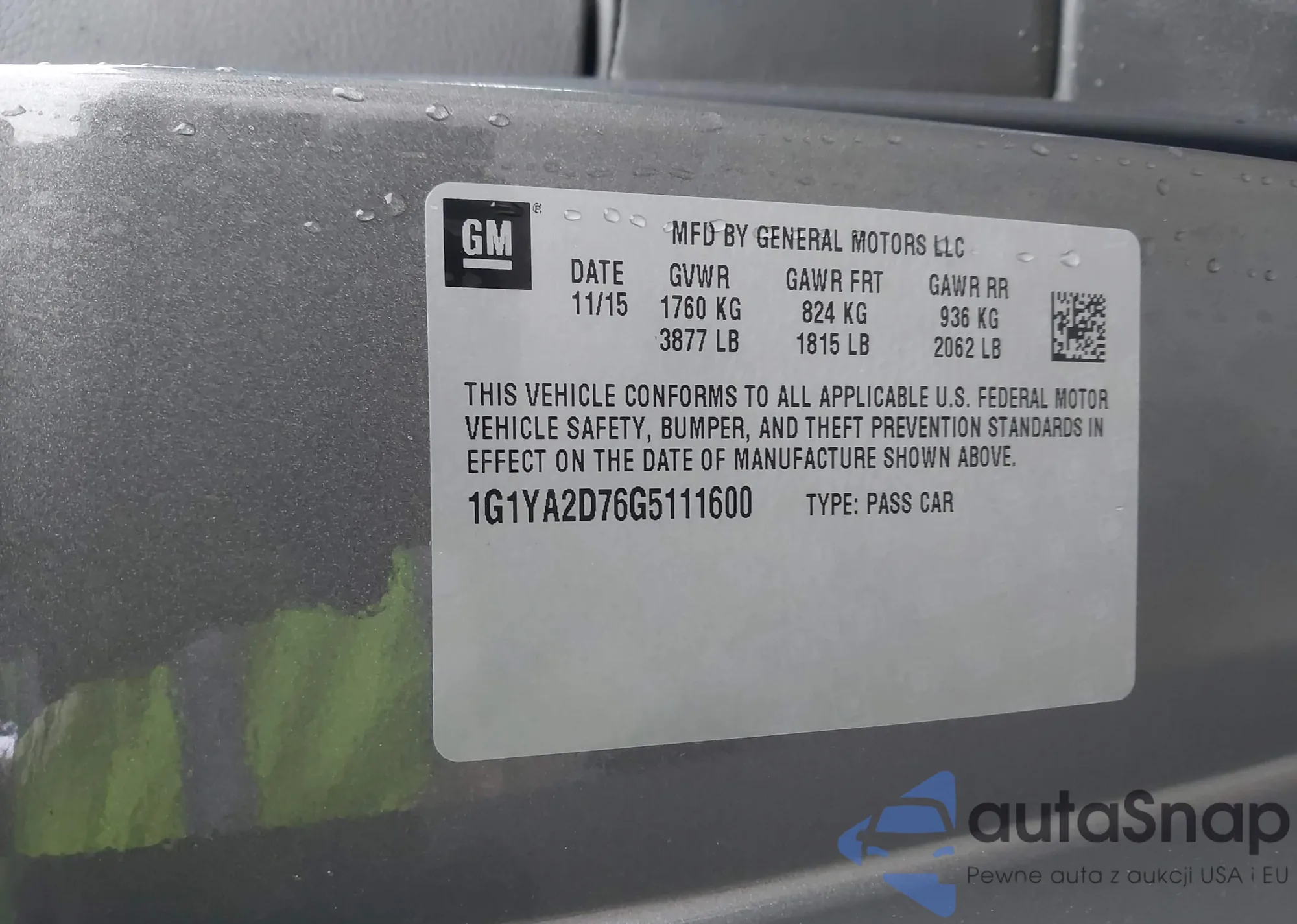 • VIN 1G1YA2D76G5111600