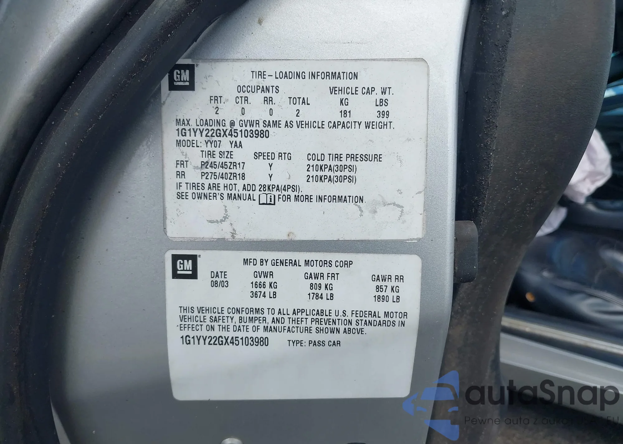• VIN 1G1YY22GX45103980