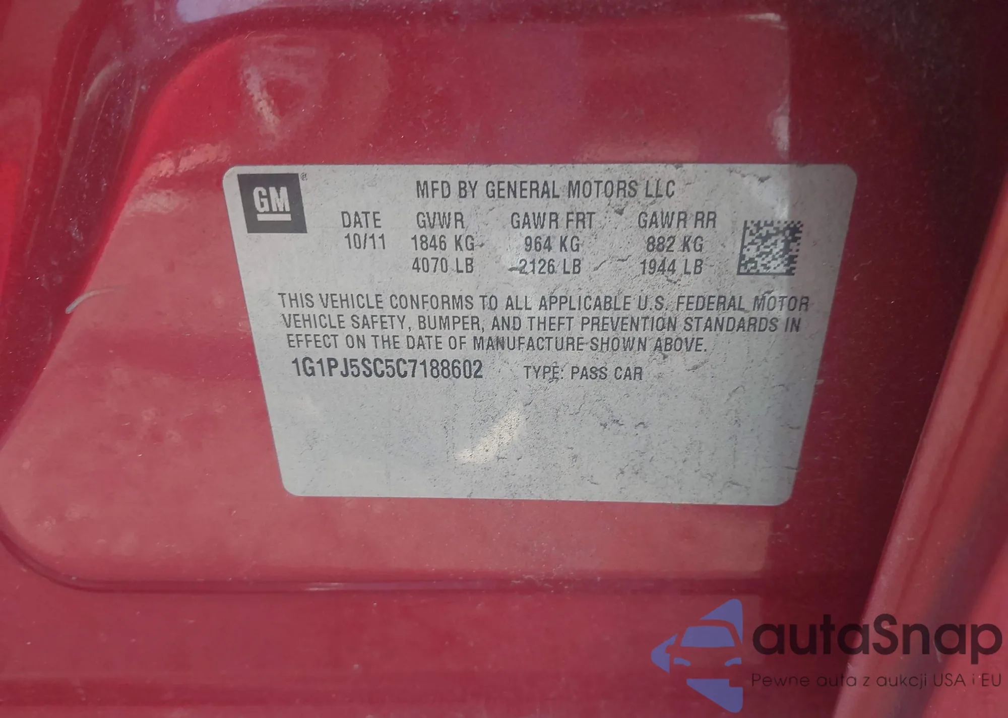 LOT: 44053123 VIN: 1G1PJ5SC5C7188602