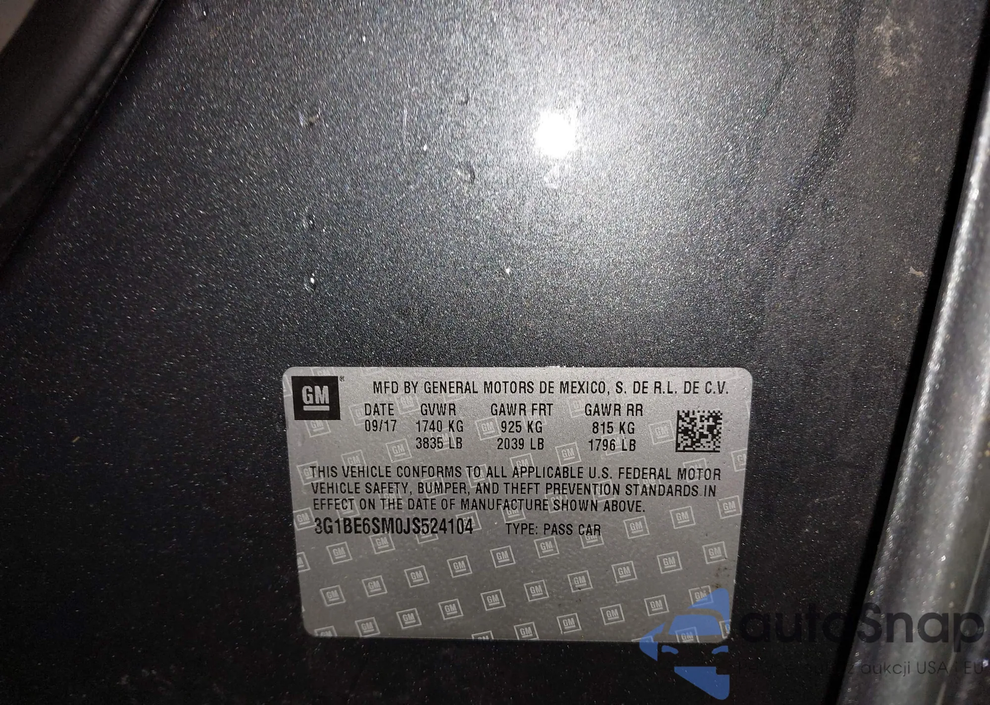 LOT: 43937880 VIN: 3G1BE6SM0JS524104