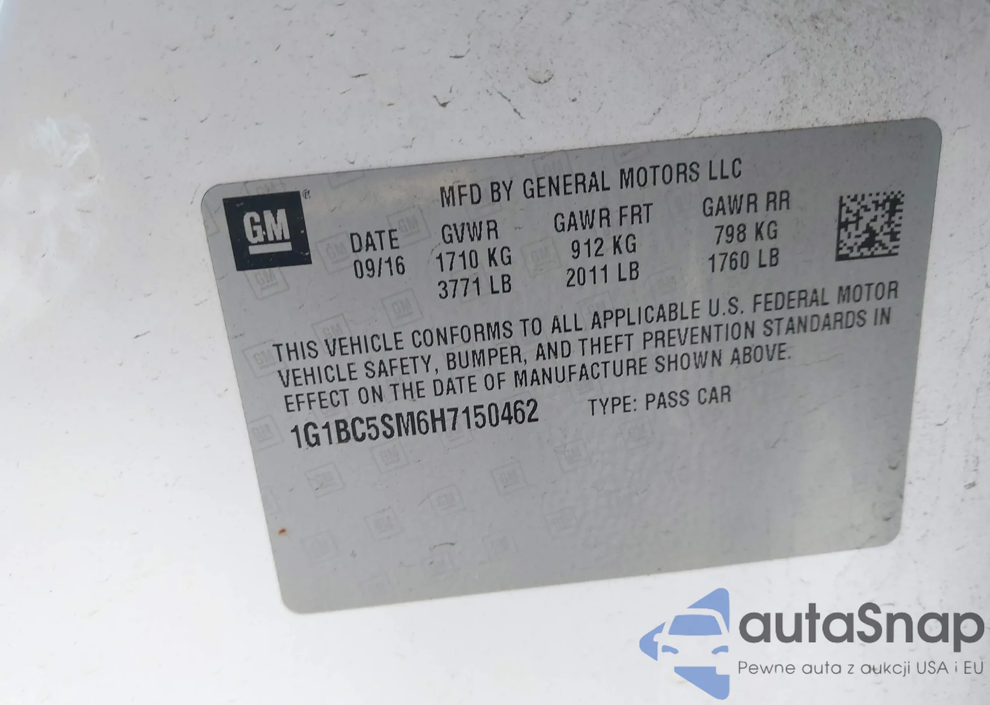 • VIN 1G1BC5SM6H7150462