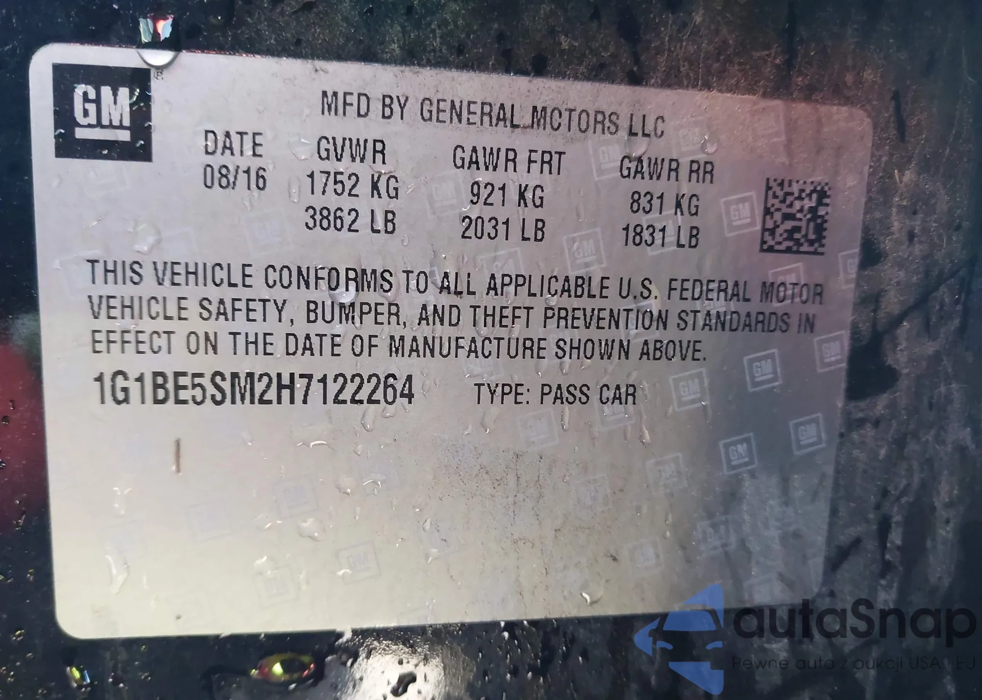 LOT: 43634845 VIN: 1G1BE5SM2H7122264