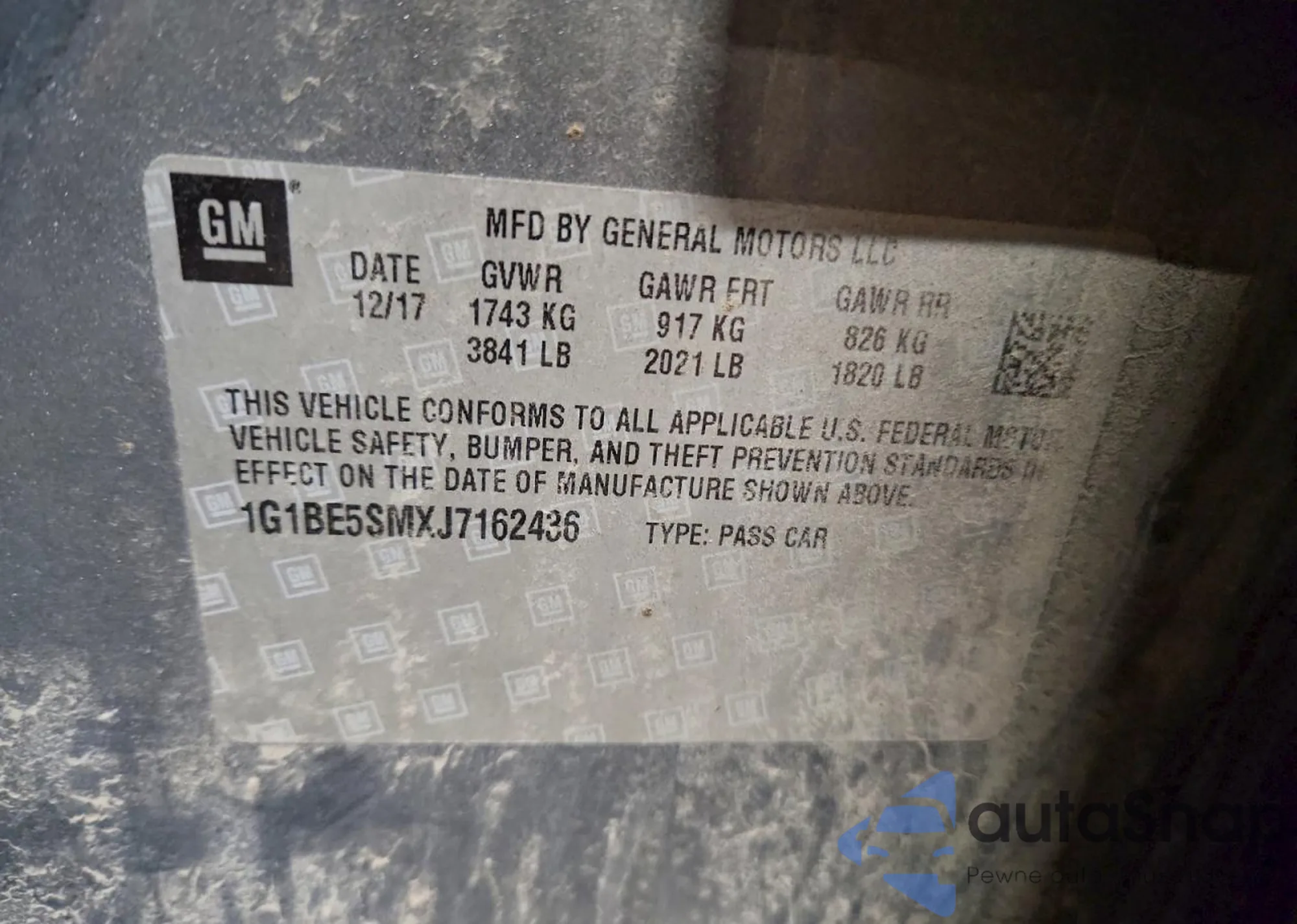 • VIN 1G1BE5SMXJ7162436