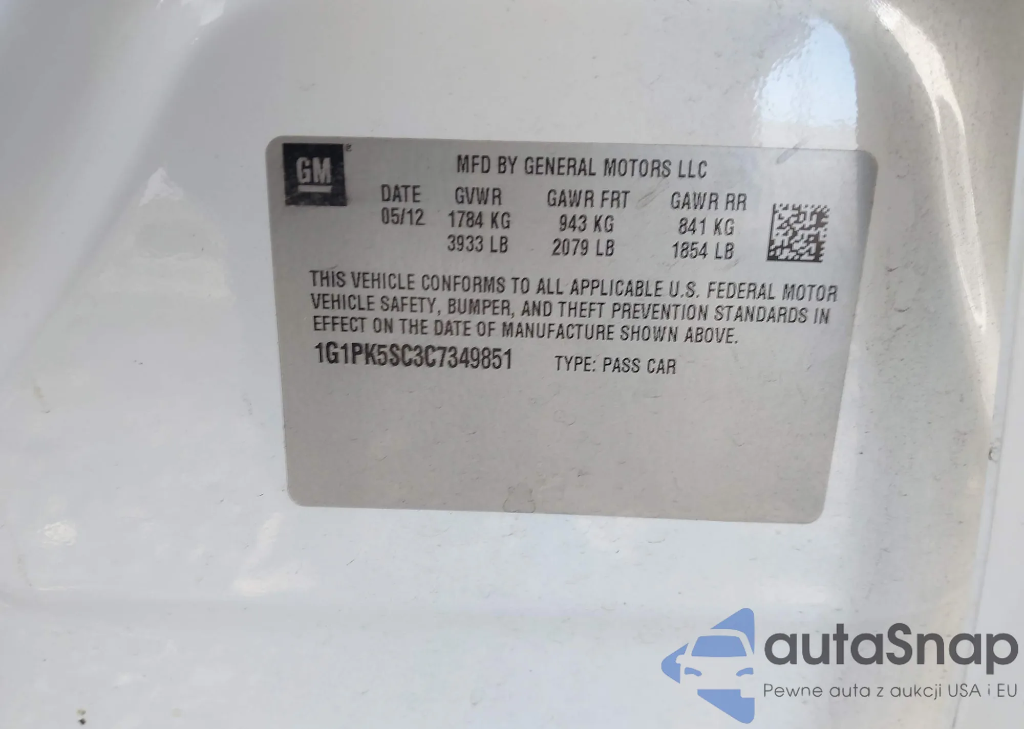• VIN 1G1PK5SC3C7349851
