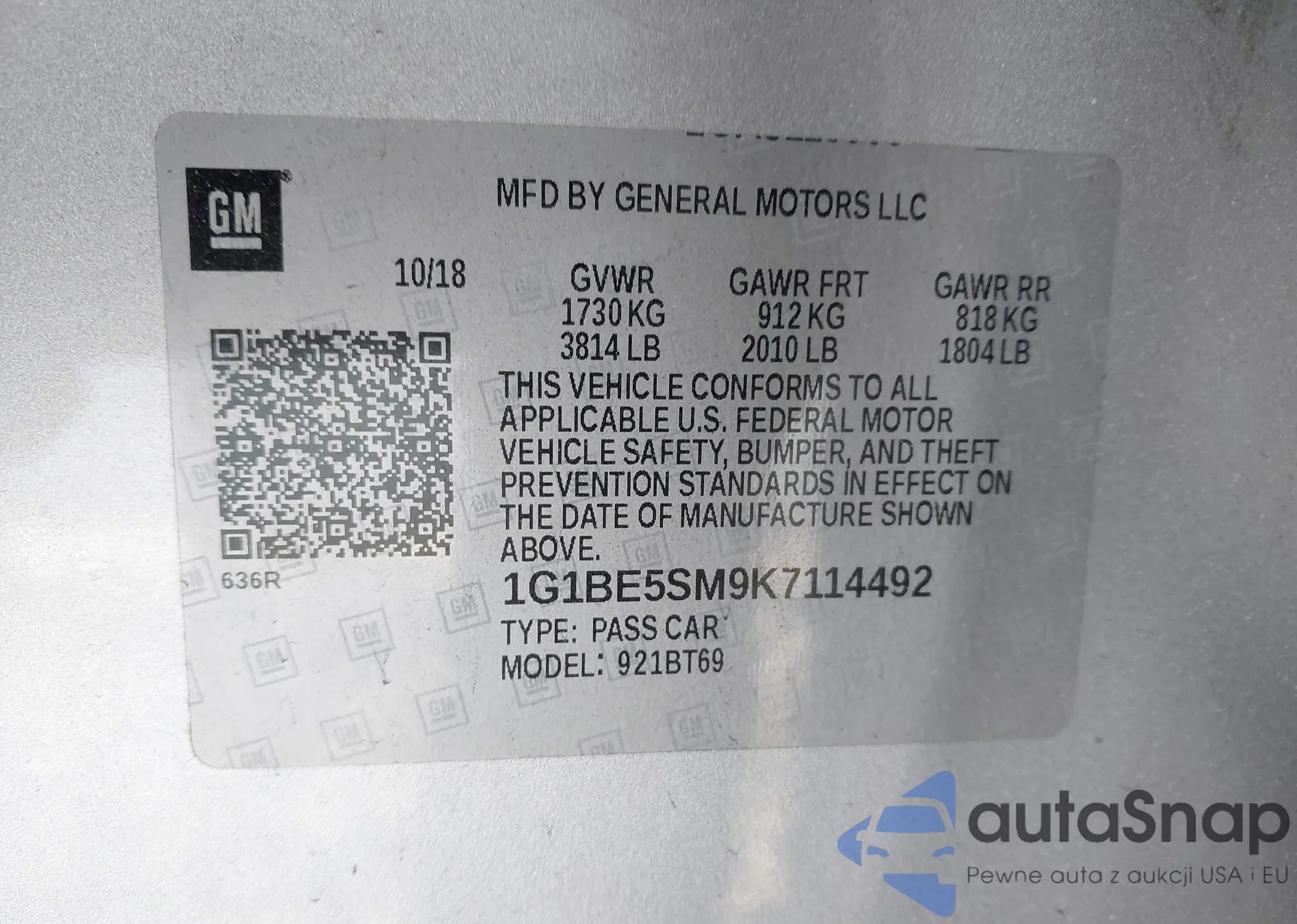 • VIN 1G1BE5SMXJ7146222