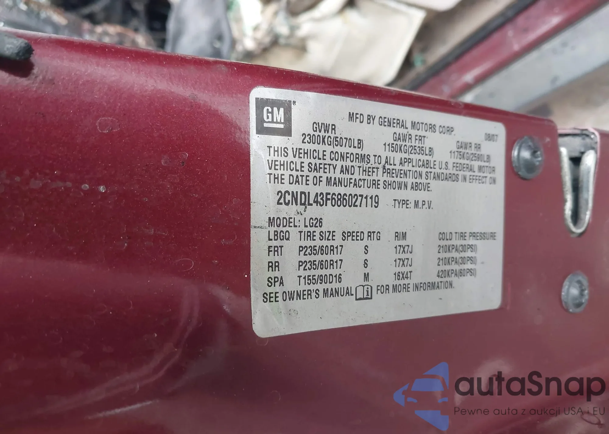 LOT: 43697752 VIN: 2CNDL43F686027119