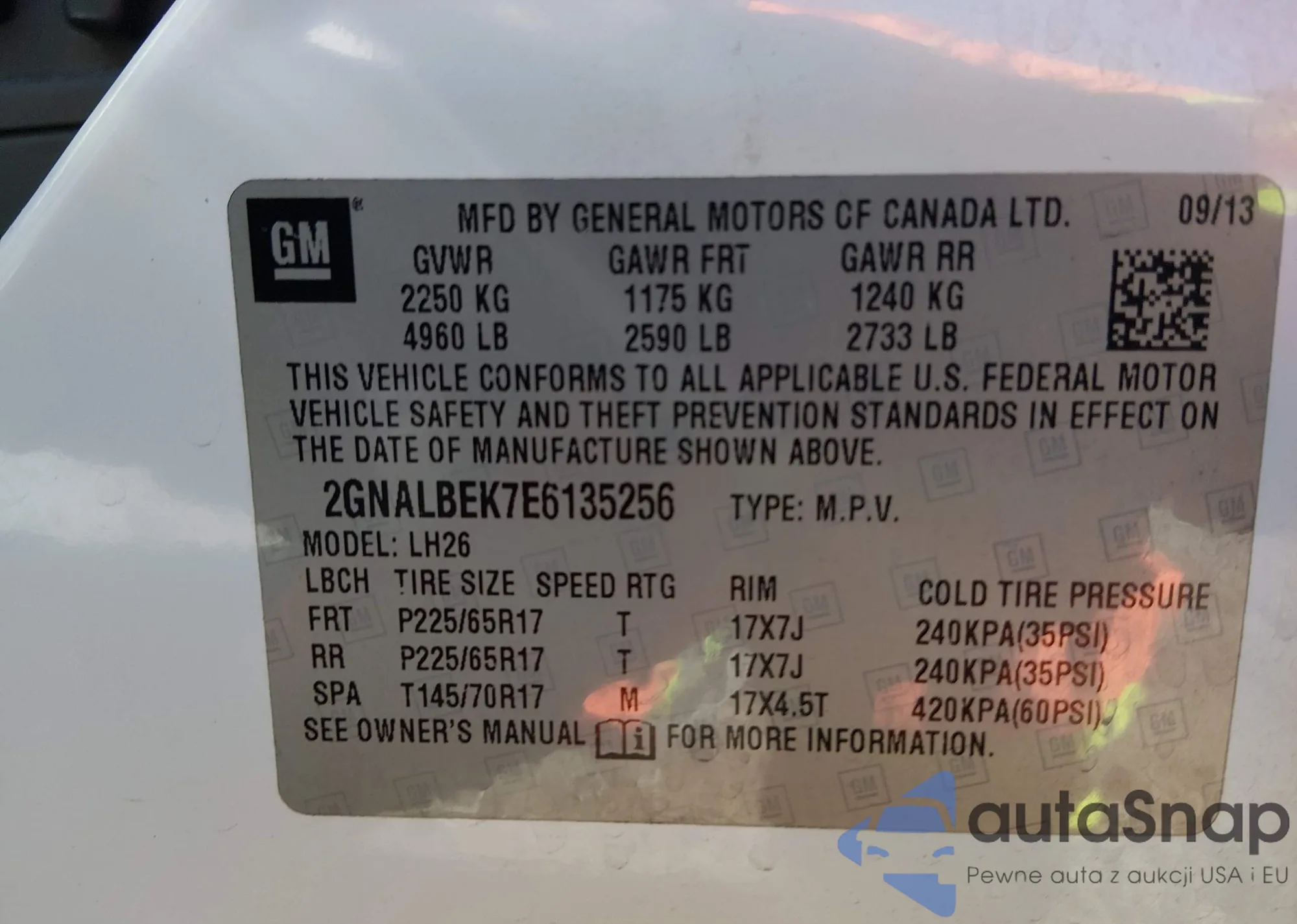 • VIN 2GNALBEK7E6135256