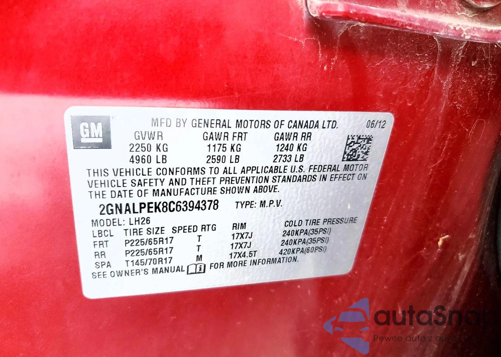 • VIN 2GNALPEK8C6394378