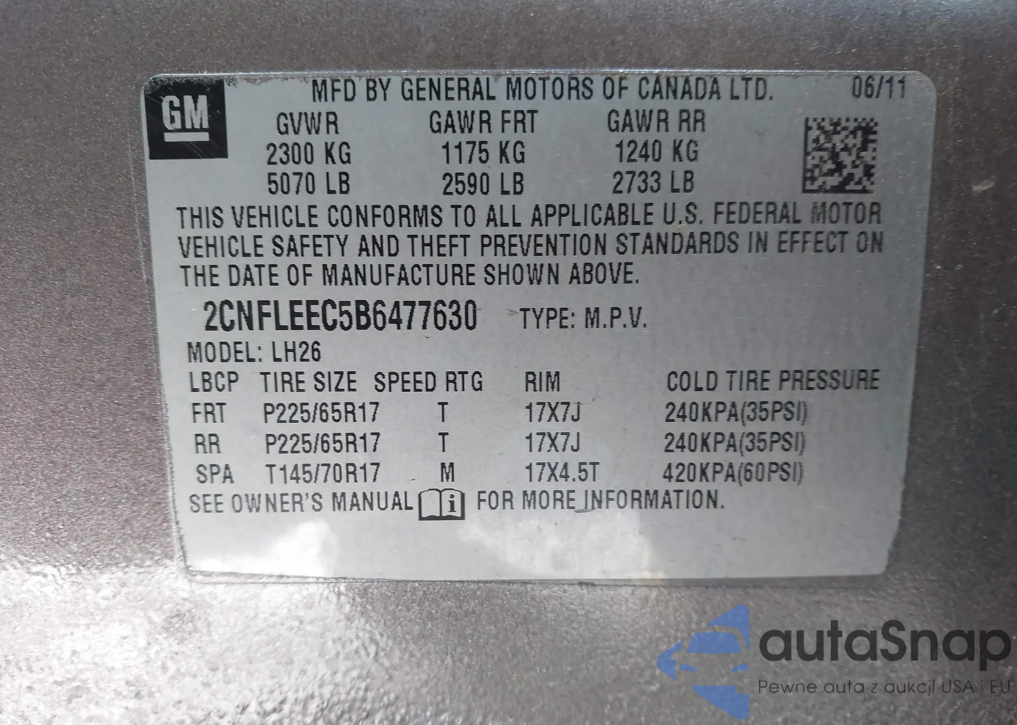 • VIN 2CNFLEEC5B6477630