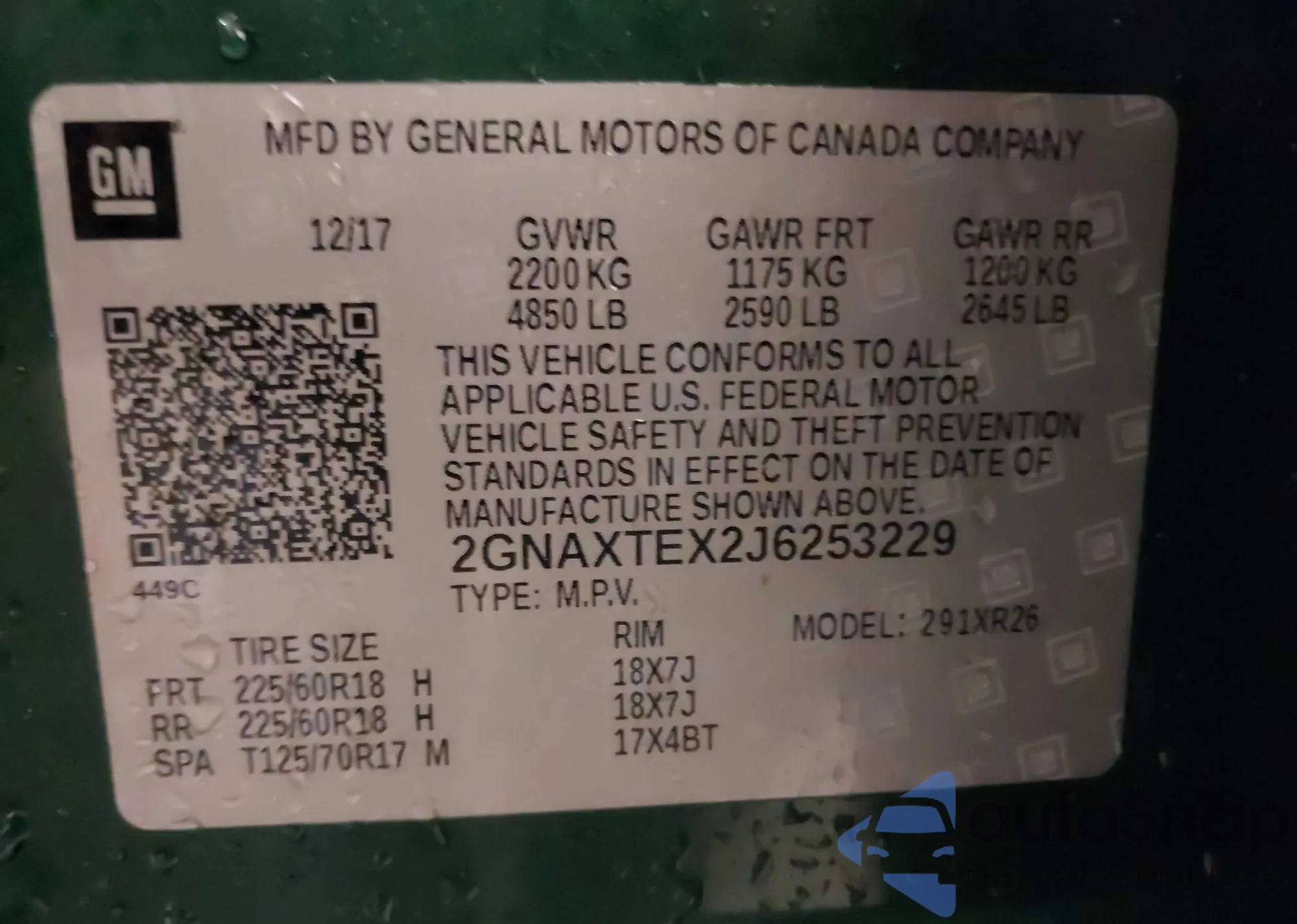 • VIN 2GNAXTEX2J6253229