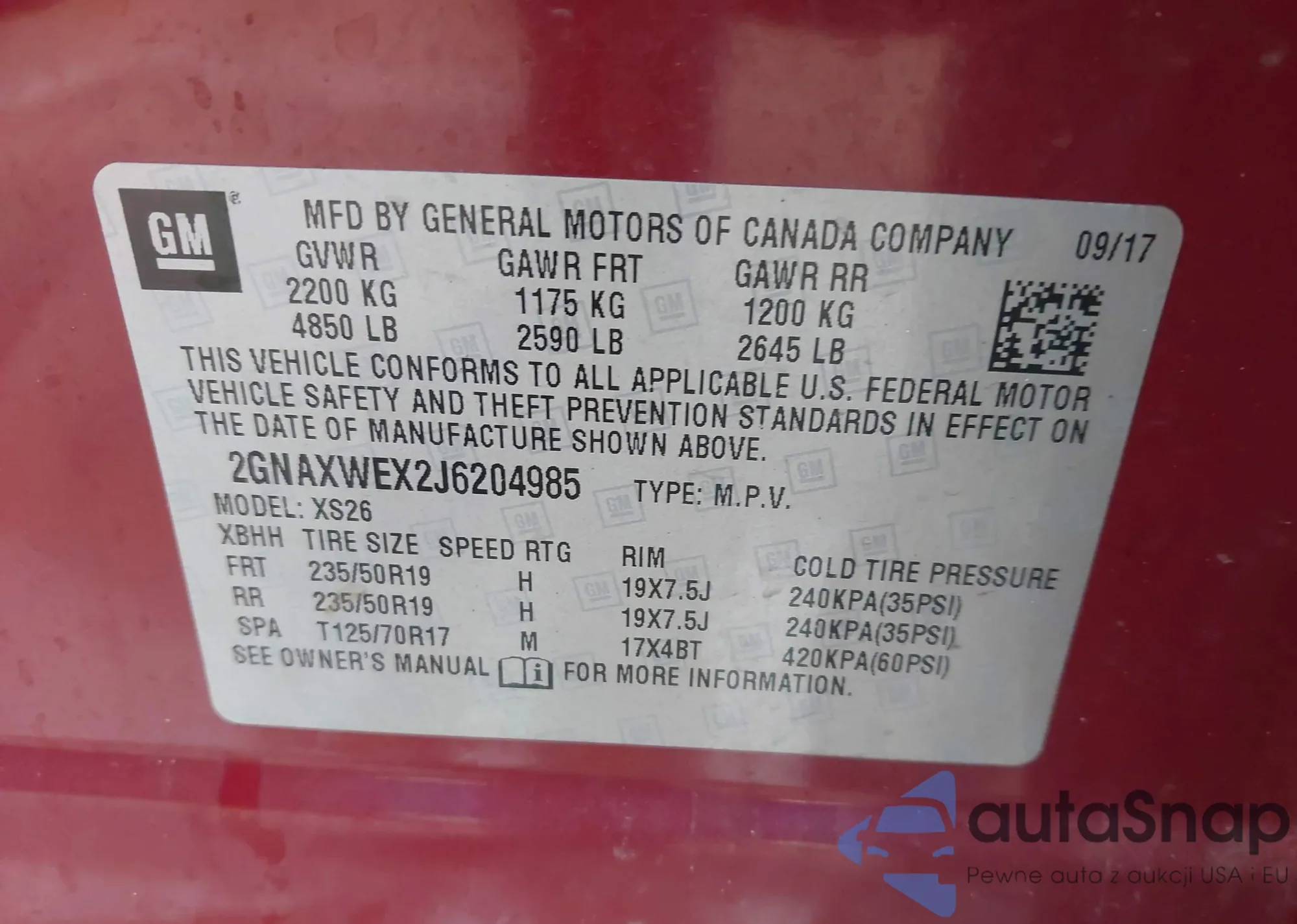 • VIN 2GNAXWEX2J6204985