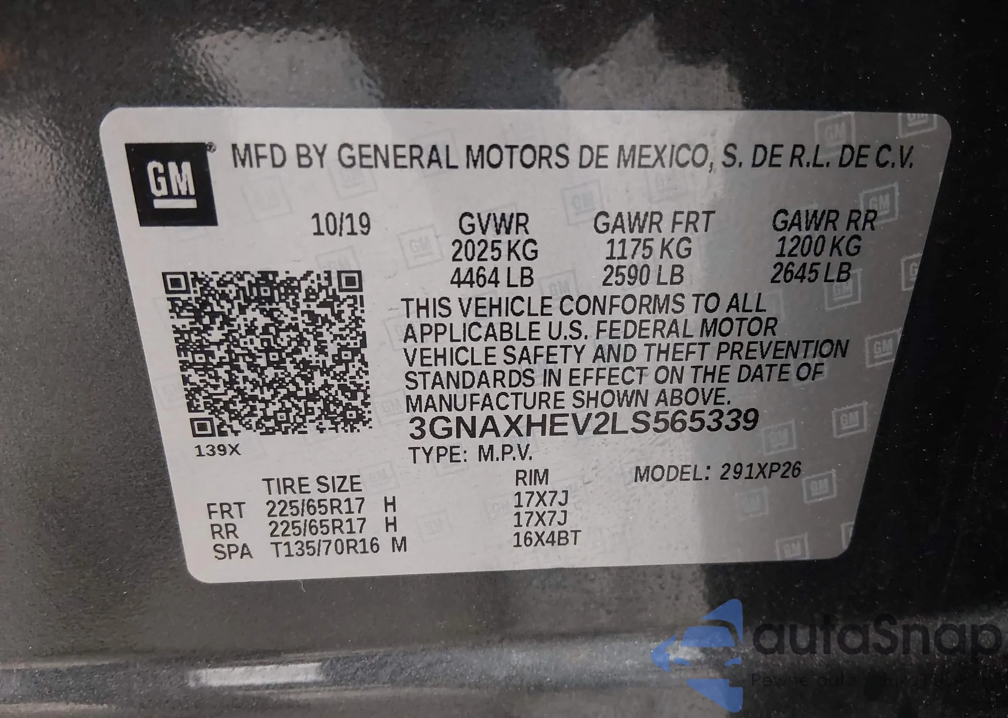 • VIN 3GNAXHEV2LS565339