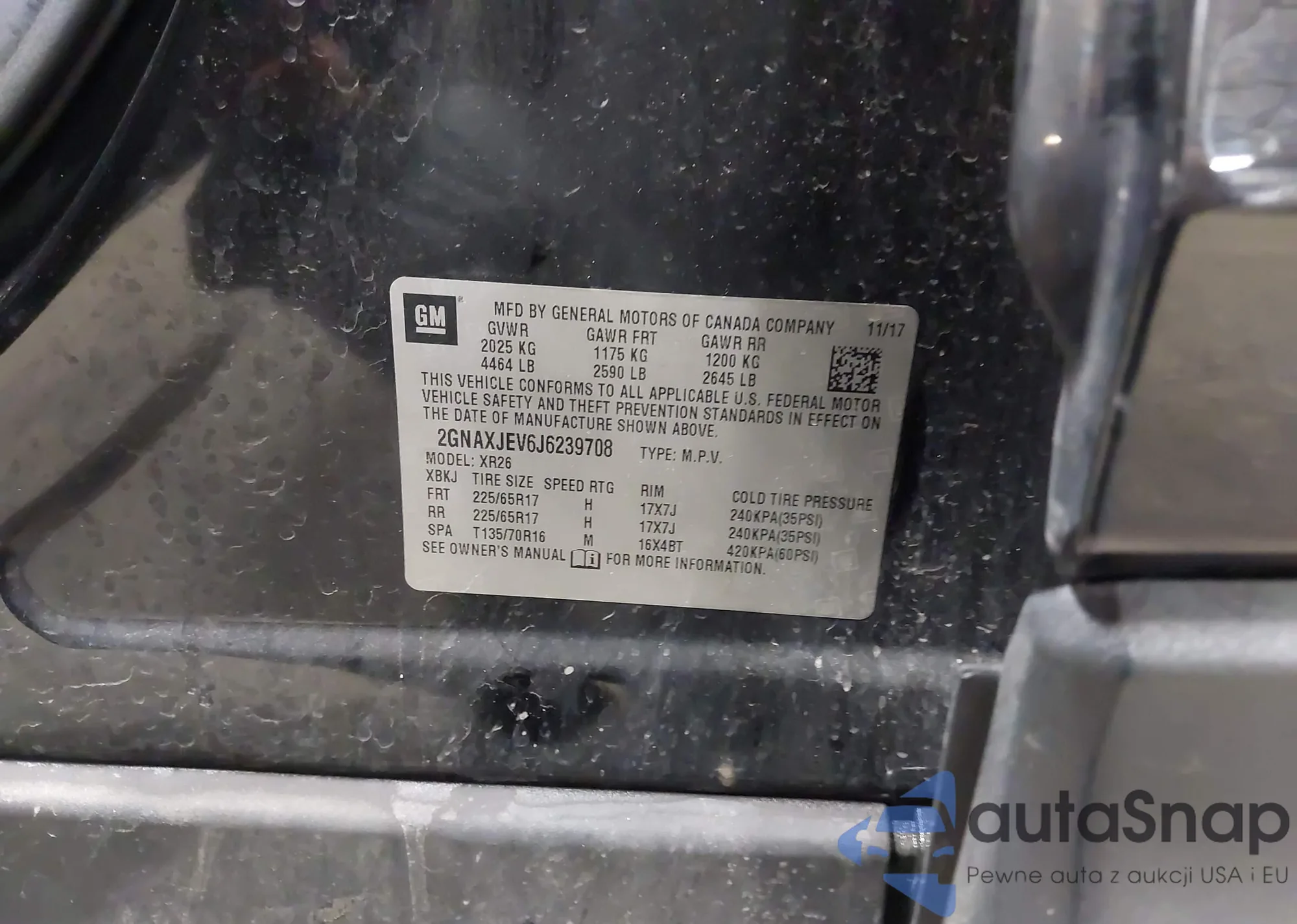 • VIN 2GNAXJEV6J6239708