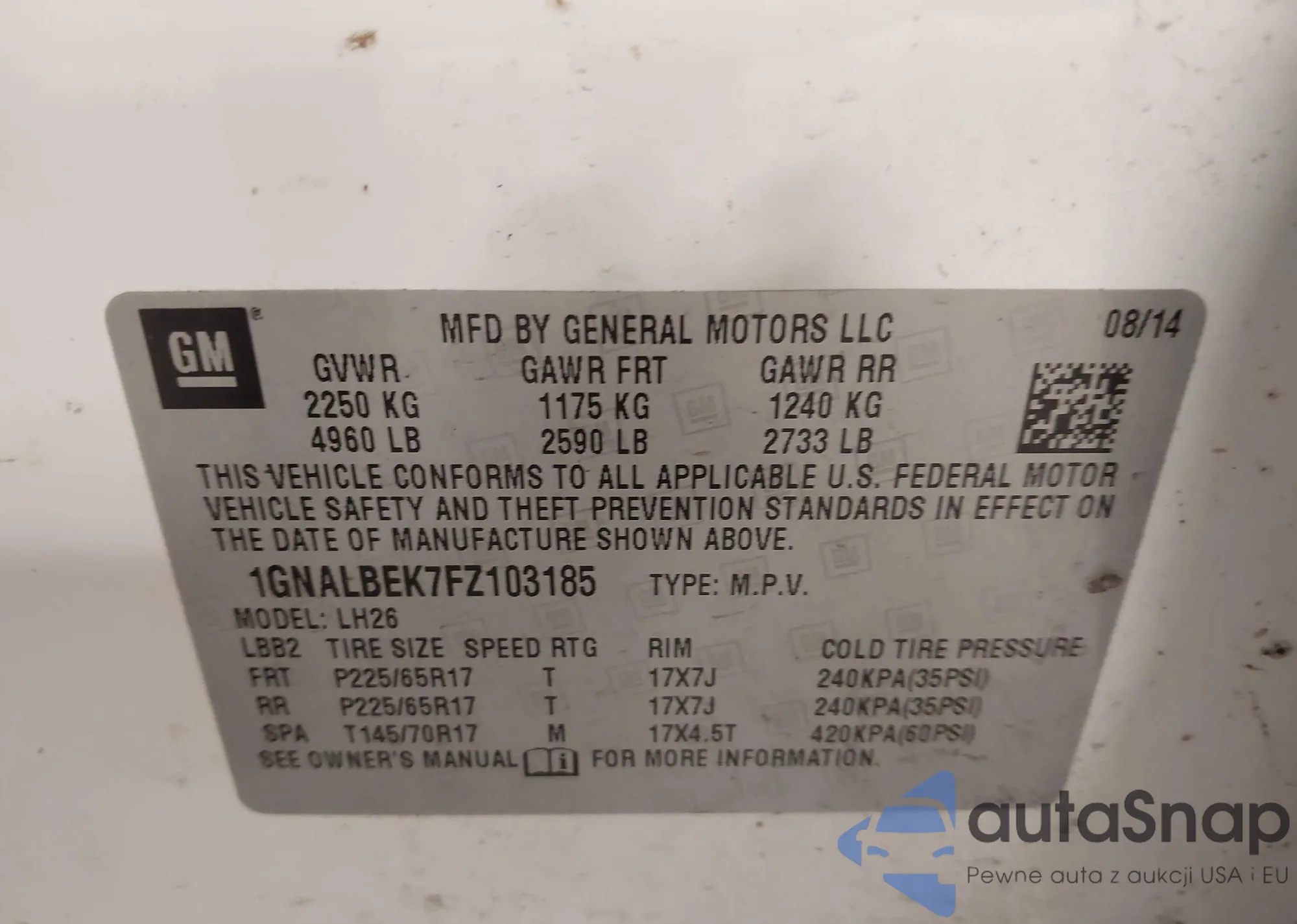 • VIN 1GNALBEK7FZ103185
