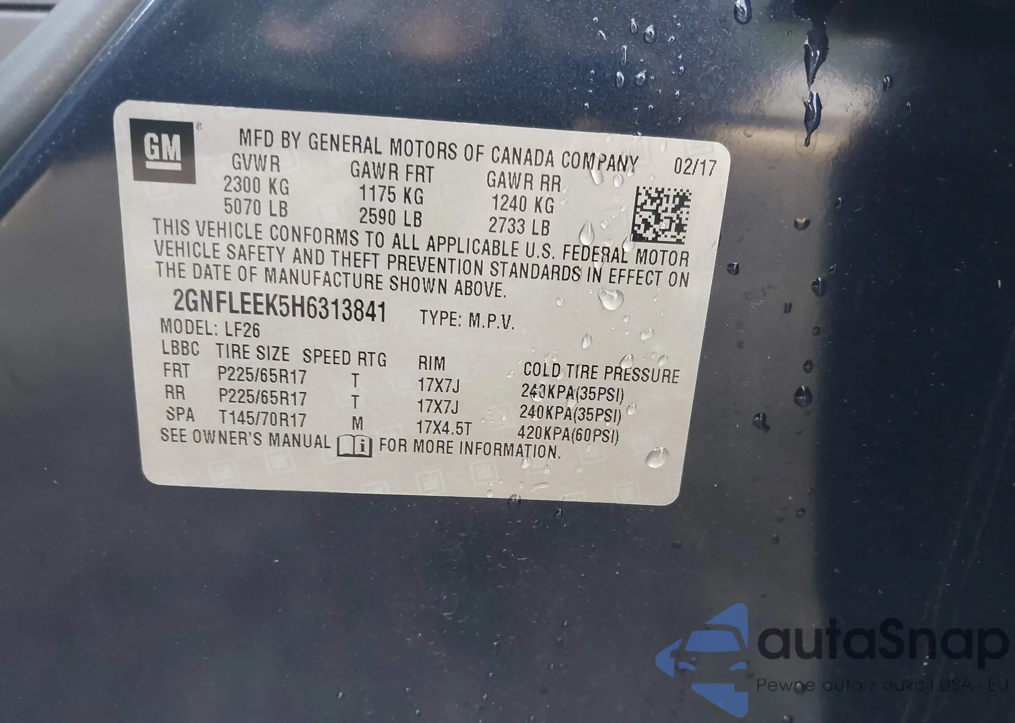 • VIN 2GNFLEEK5H6313841