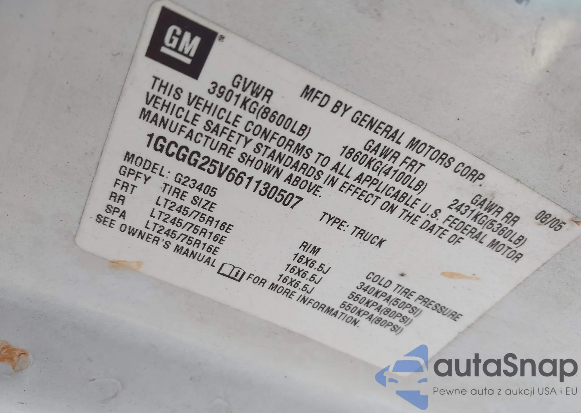 • VIN 1GCGG25V661130507