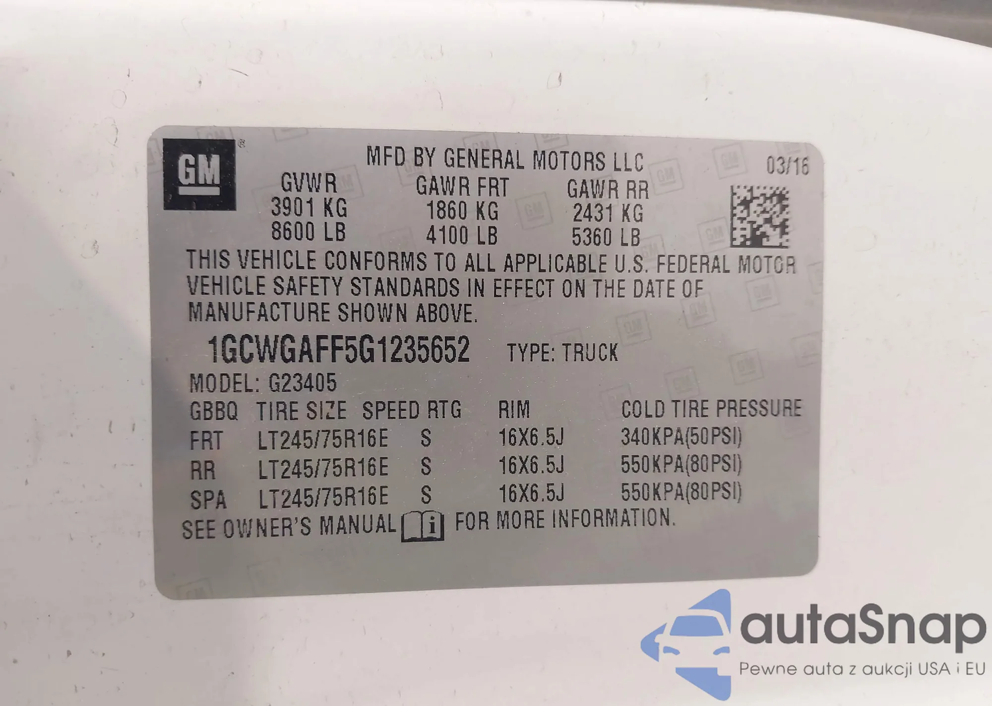 • VIN 1GCWGAFF5G1235652