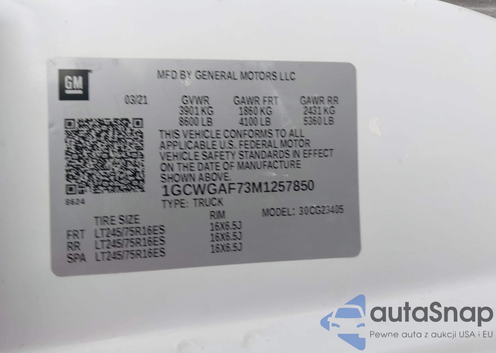 LOT: 44153832 VIN: 1GCWGAF73M1257850