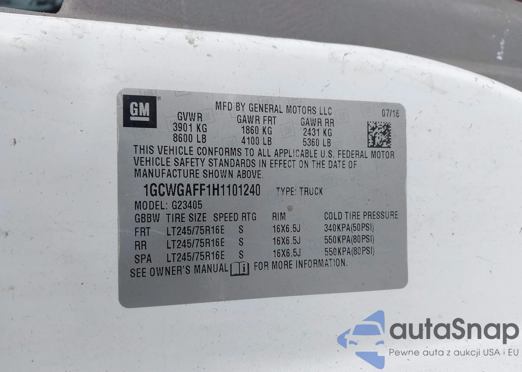 • VIN 1GCWGAFF1H1106941