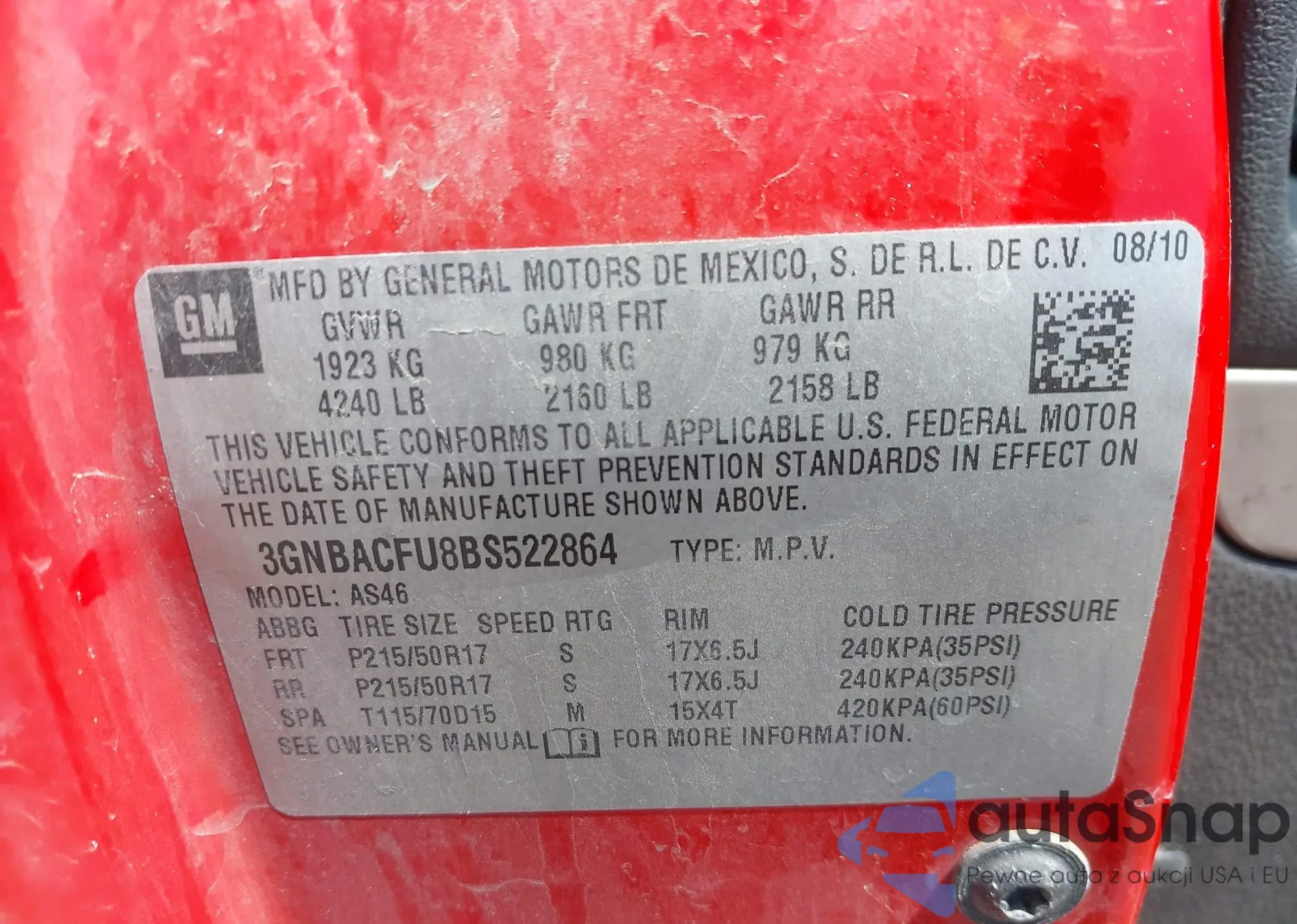 • VIN 3GNBAADBXAS541520