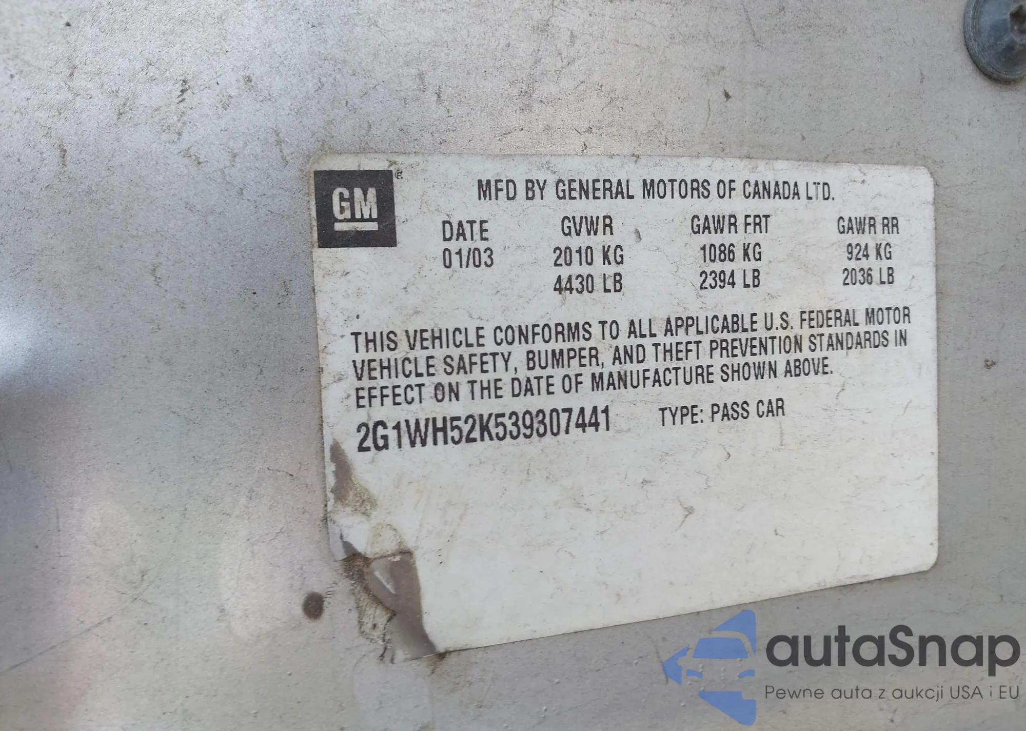 • VIN 2G1WH52K539307441
