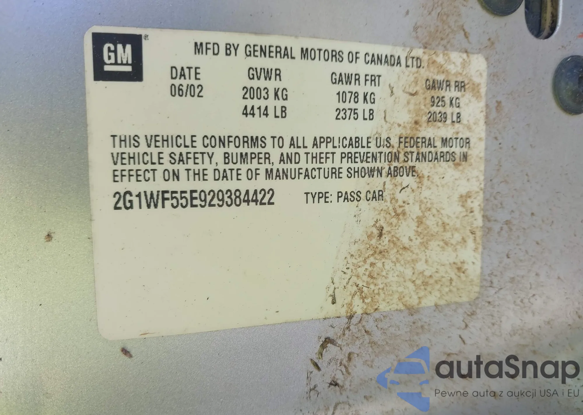 • VIN 2G1WF55E929384422