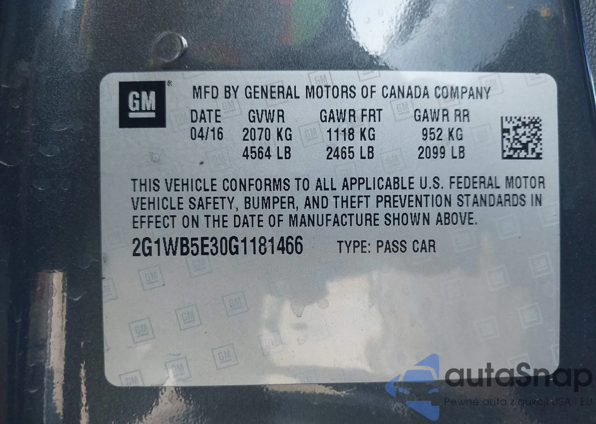 LOT: 43432936 VIN: 2G11Z5S31K9132216