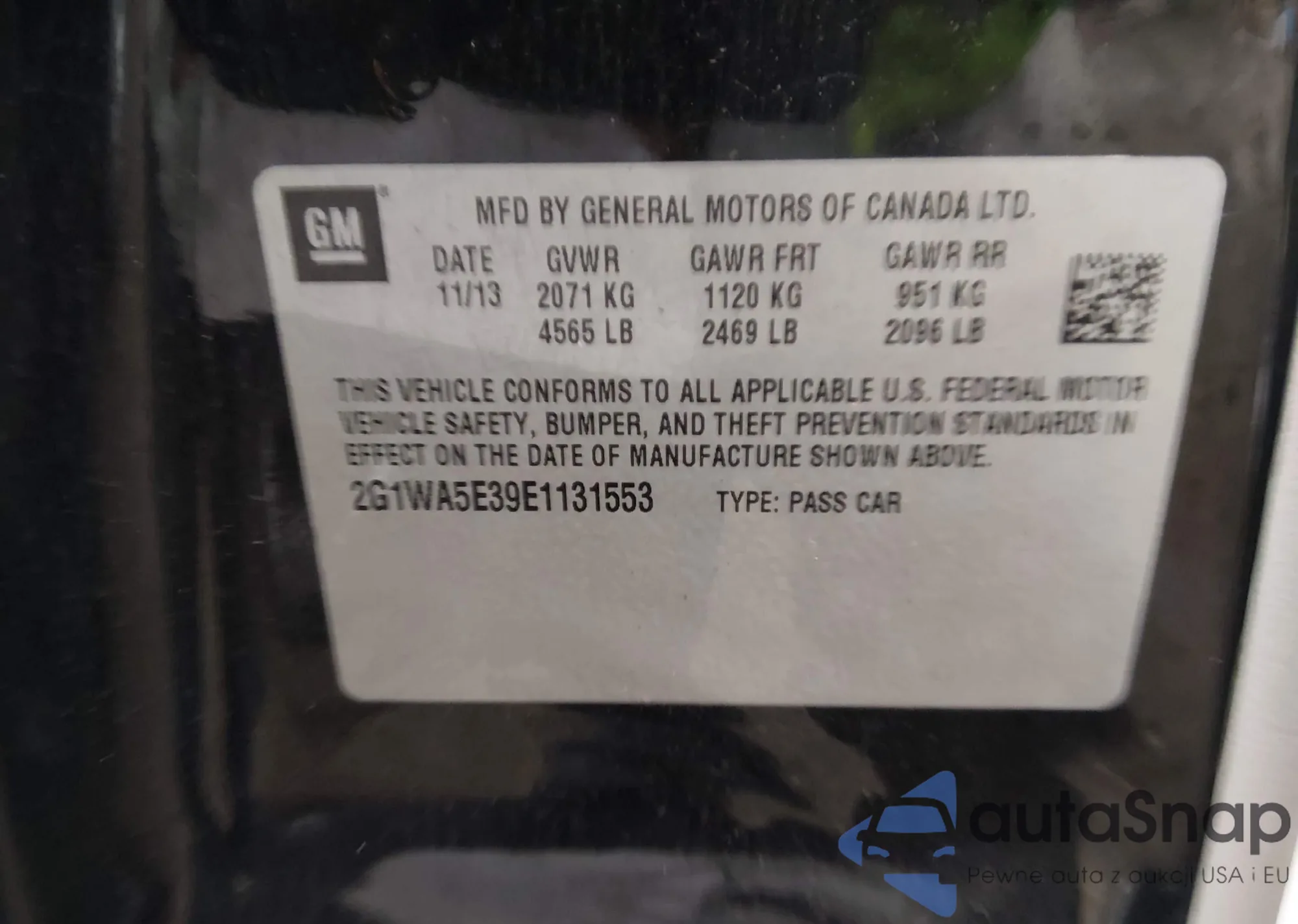 • VIN 2G1WA5E39E1131553