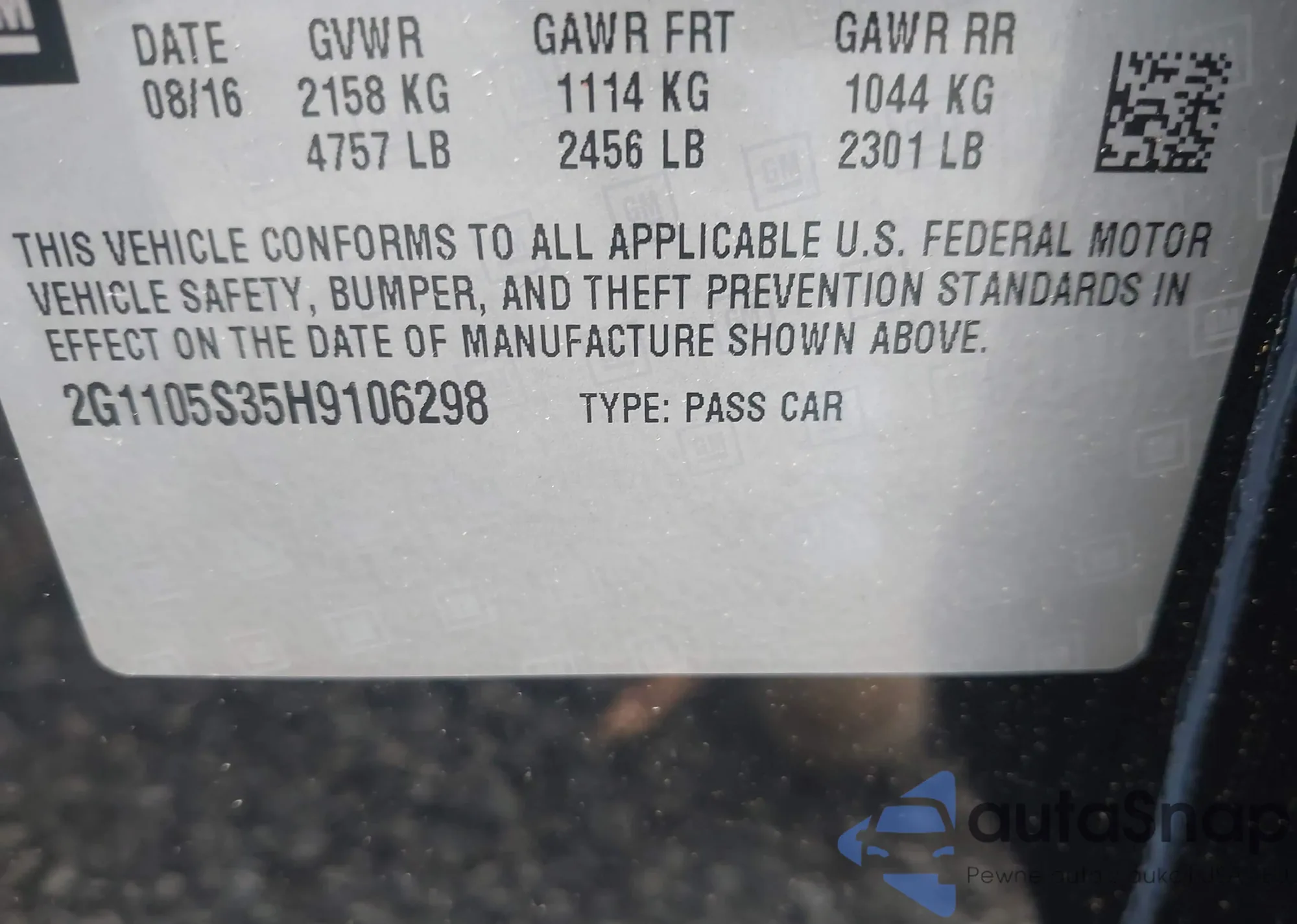 • VIN 2G1105S35H9106298