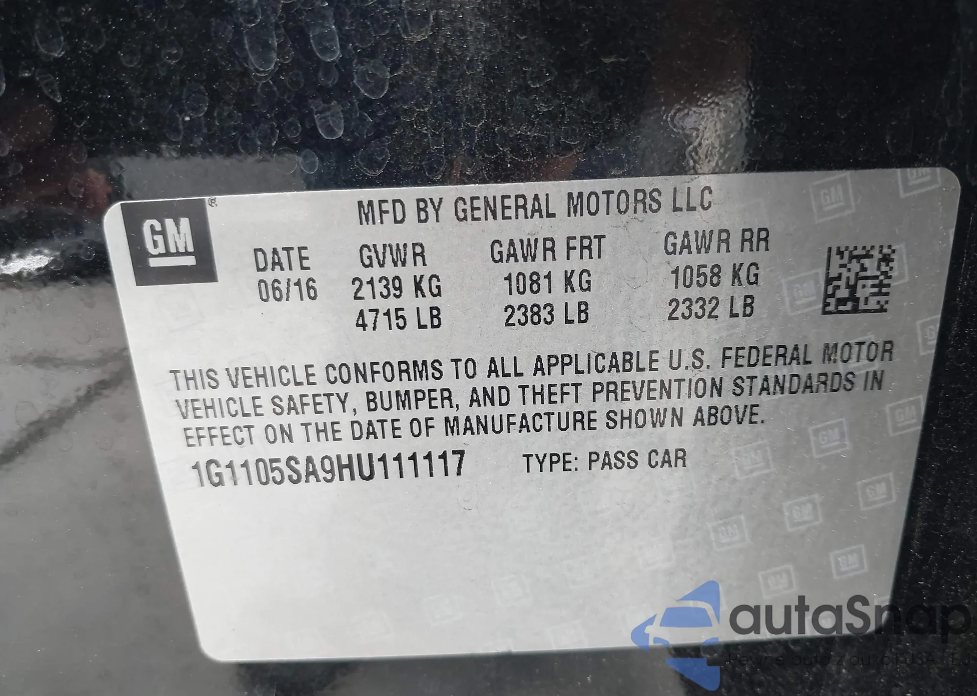 LOT: 43322162 VIN: 1G1105SA9HU111117
