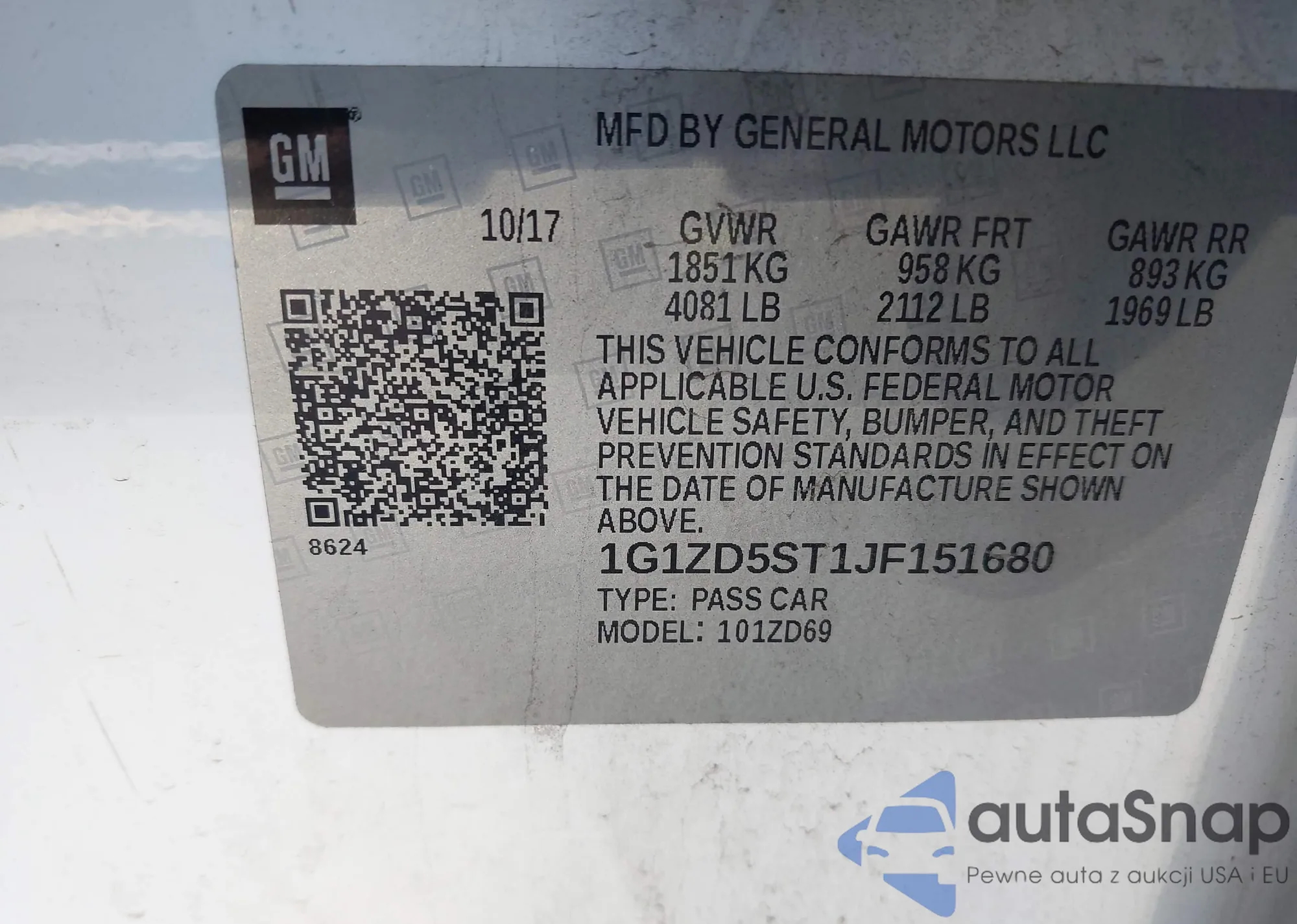 • VIN 1G1ZD5ST1JF151680