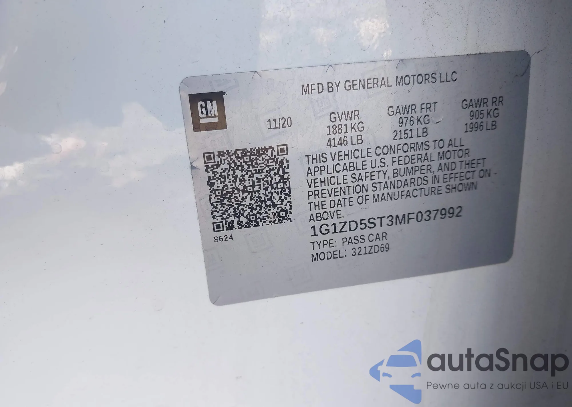 • VIN 1G1ZD5ST3MF037992
