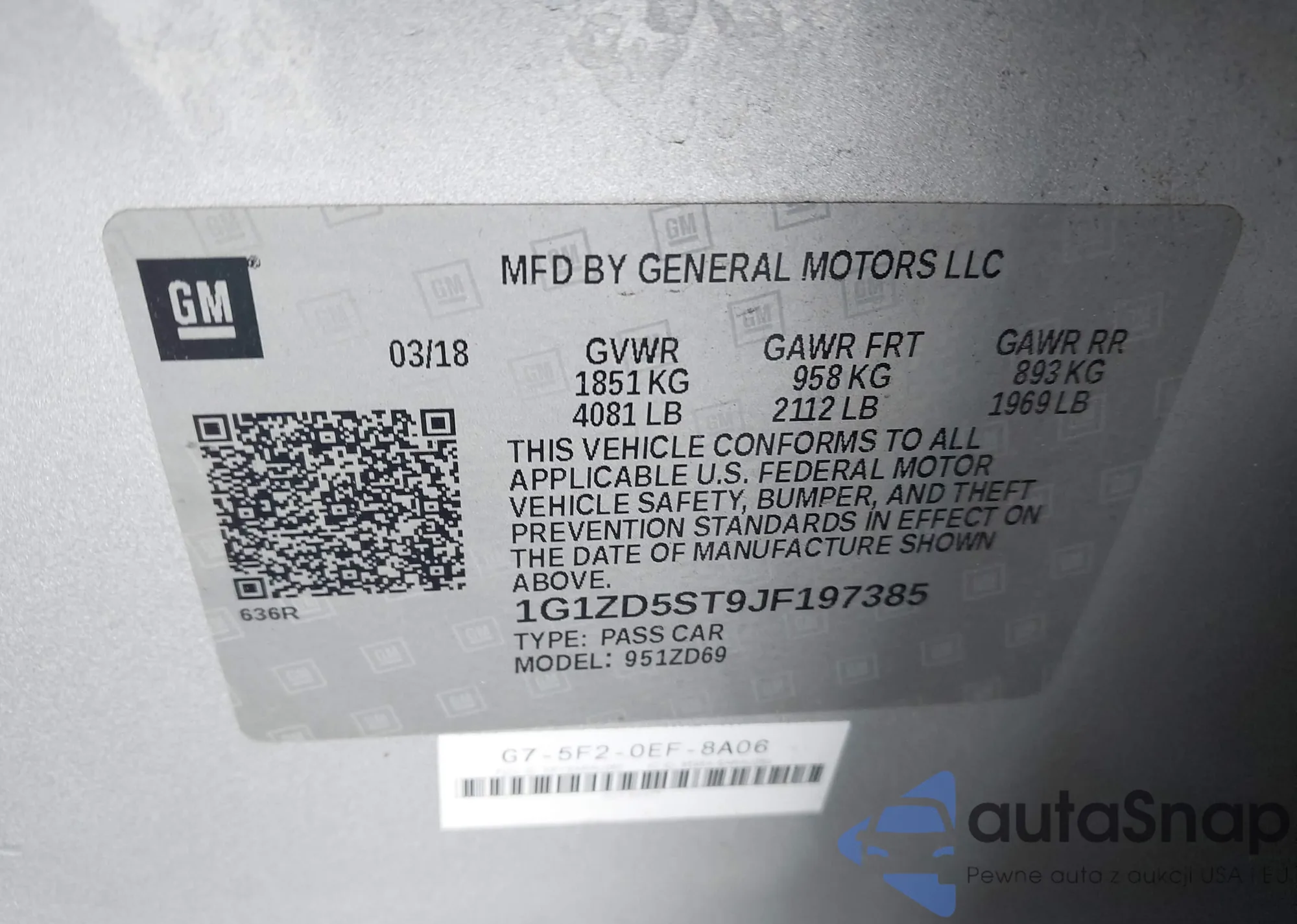• VIN 1G1ZD5ST9JF197385