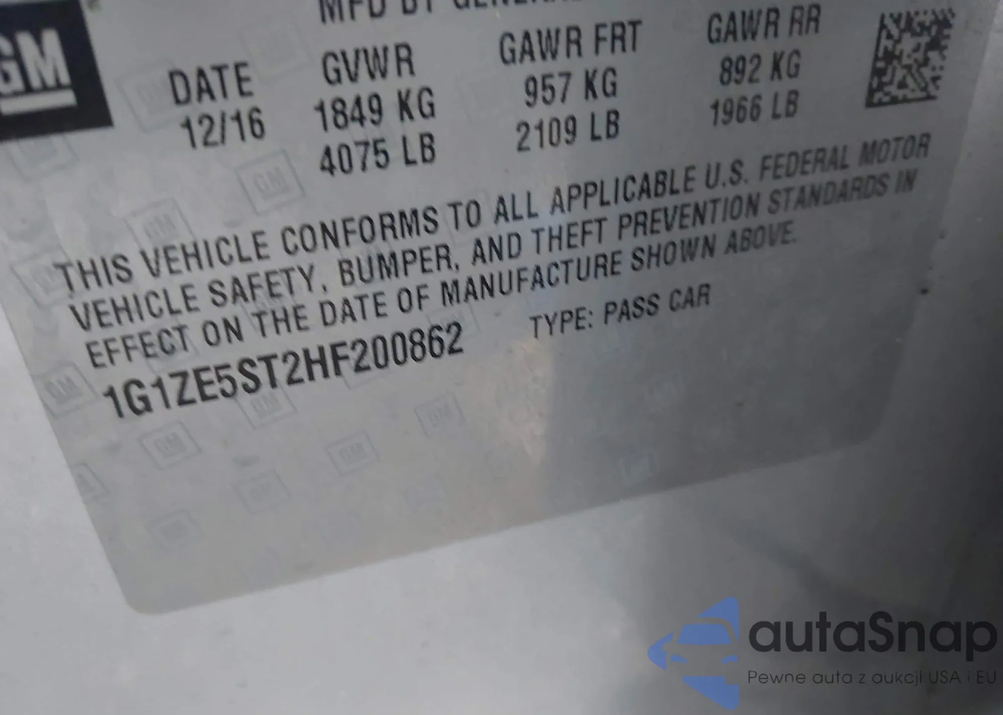 • VIN 1G1ZE5ST2HF200862