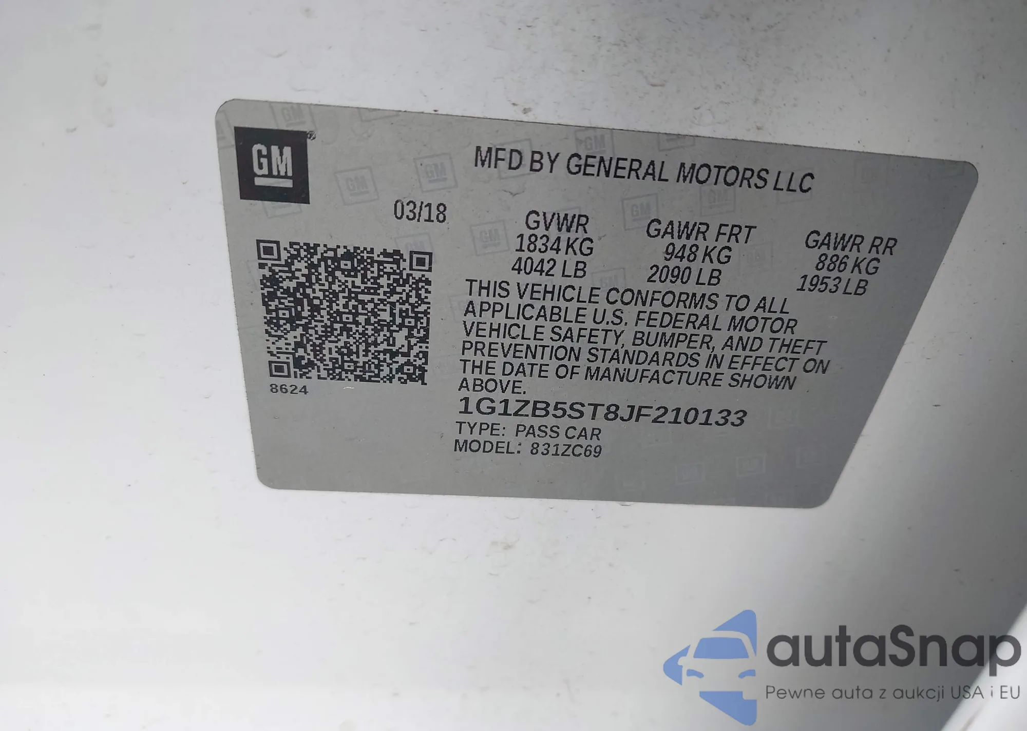 • VIN 1G1ZB5ST8JF210133