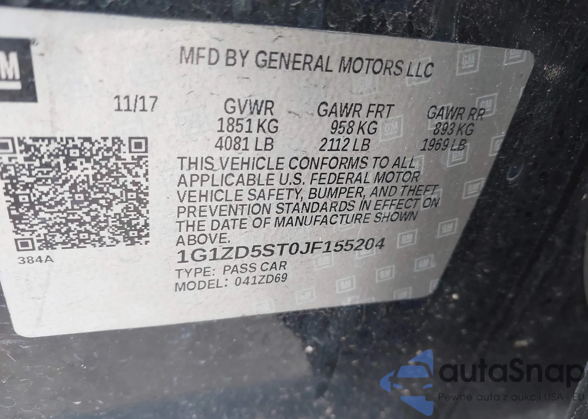 • VIN 1G1ZD5ST0JF155204