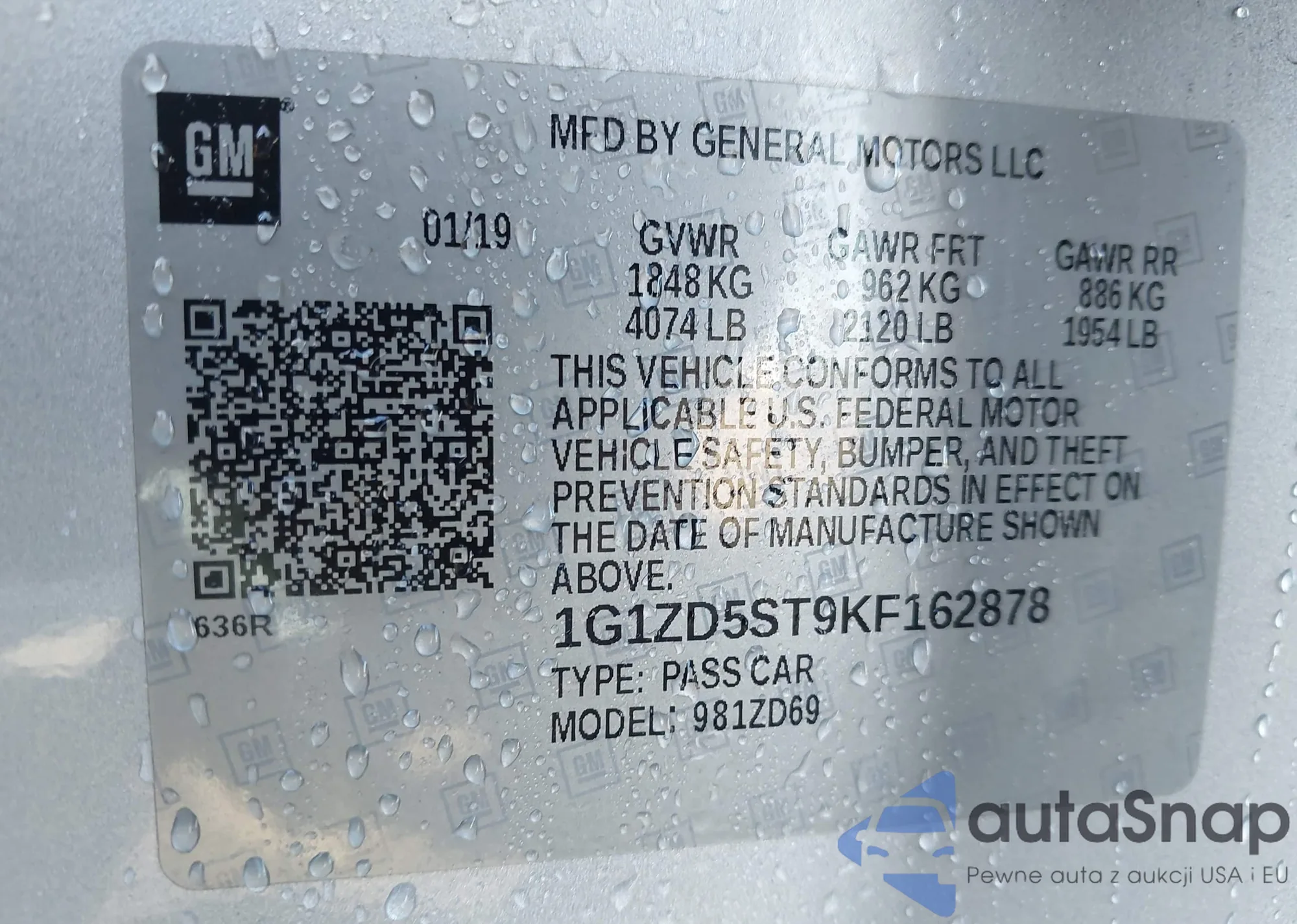 • VIN 1G1ZD5ST9KF162878