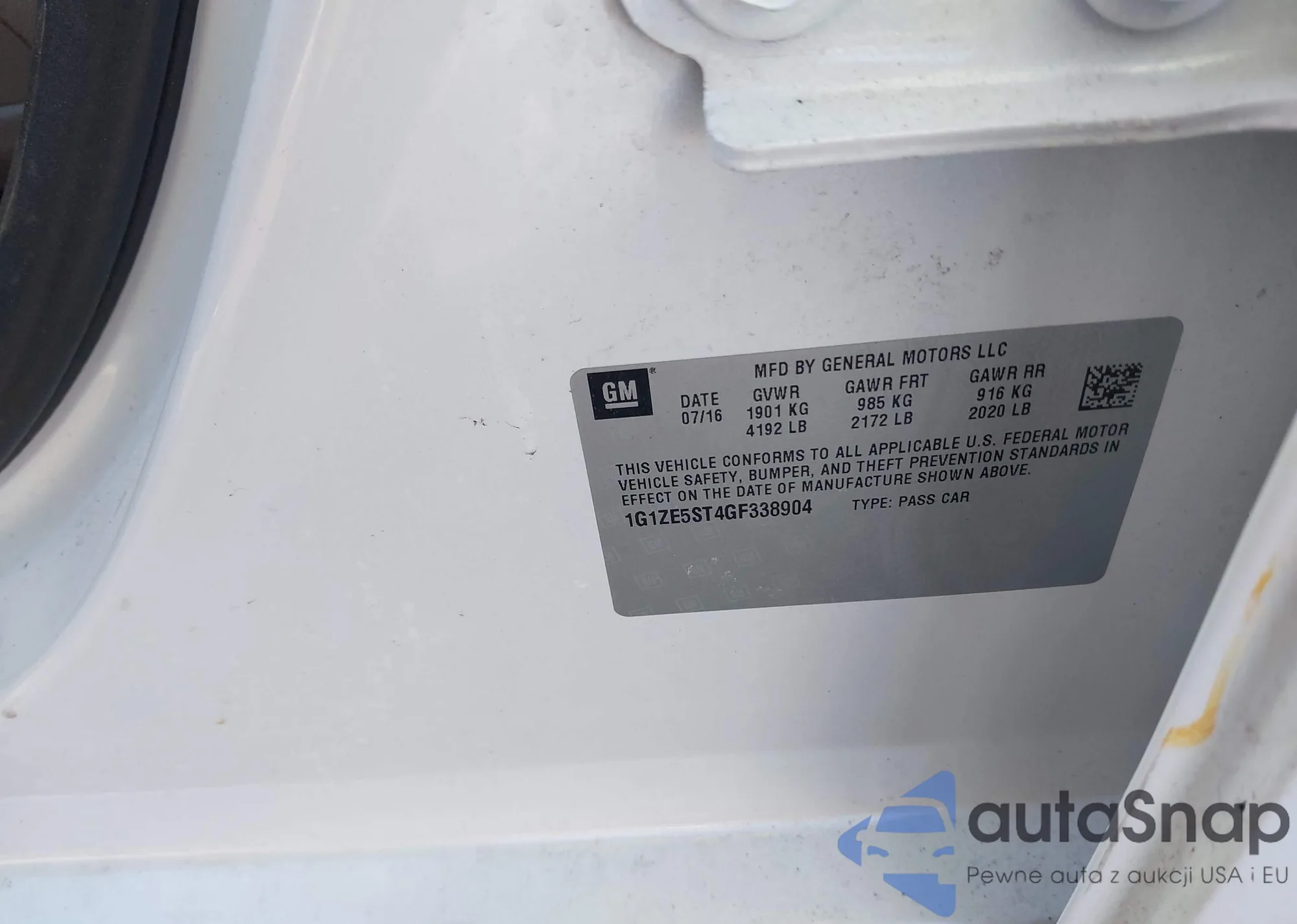 • VIN 1G1ZE5ST4GF338904