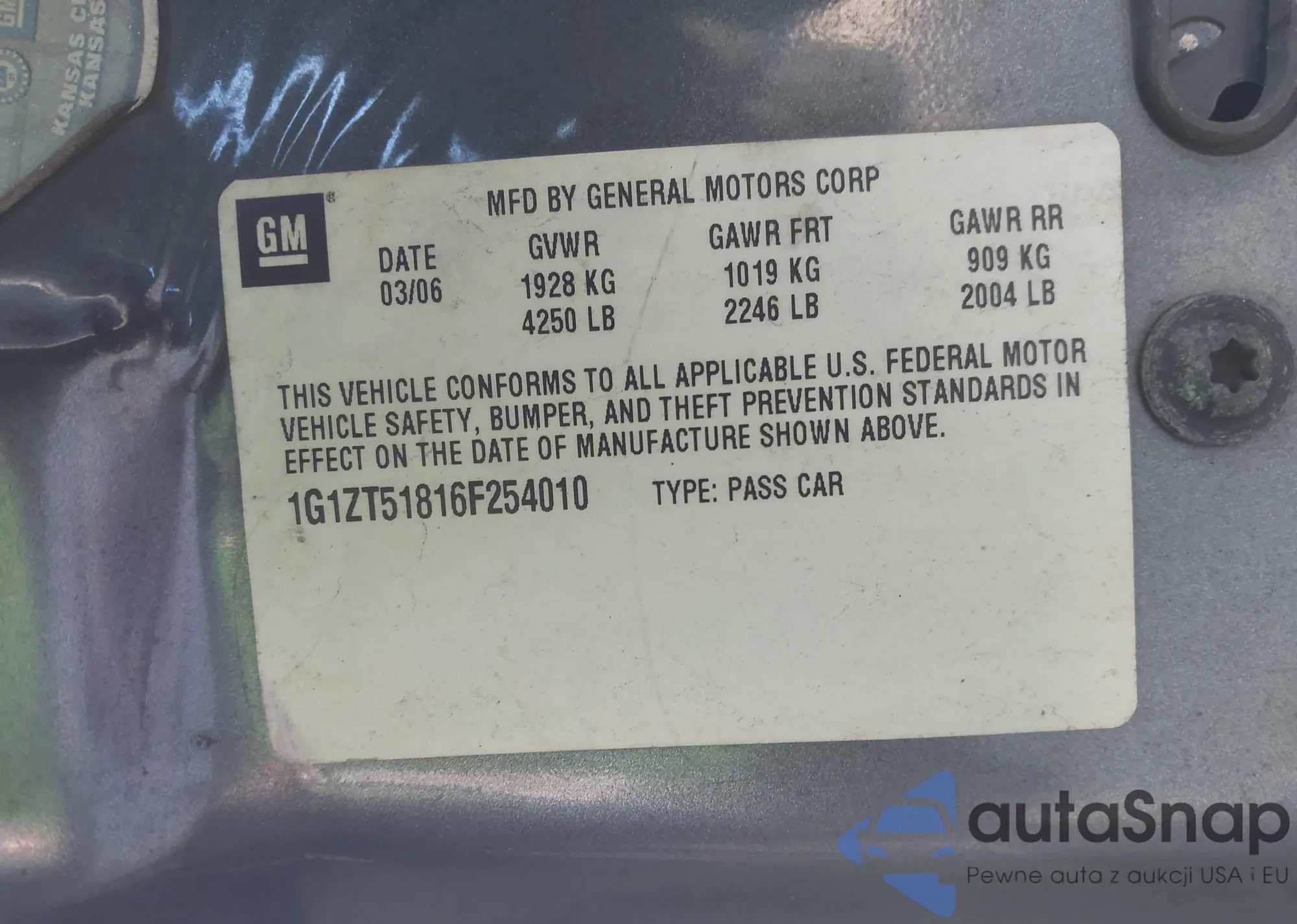 • VIN 1G1ZS51806F177049