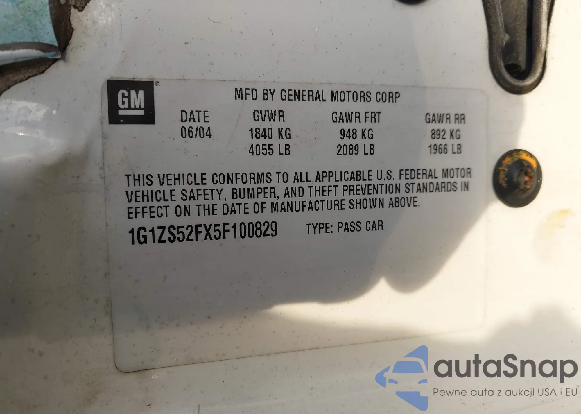 • VIN 1G1ZS52FX5F100829