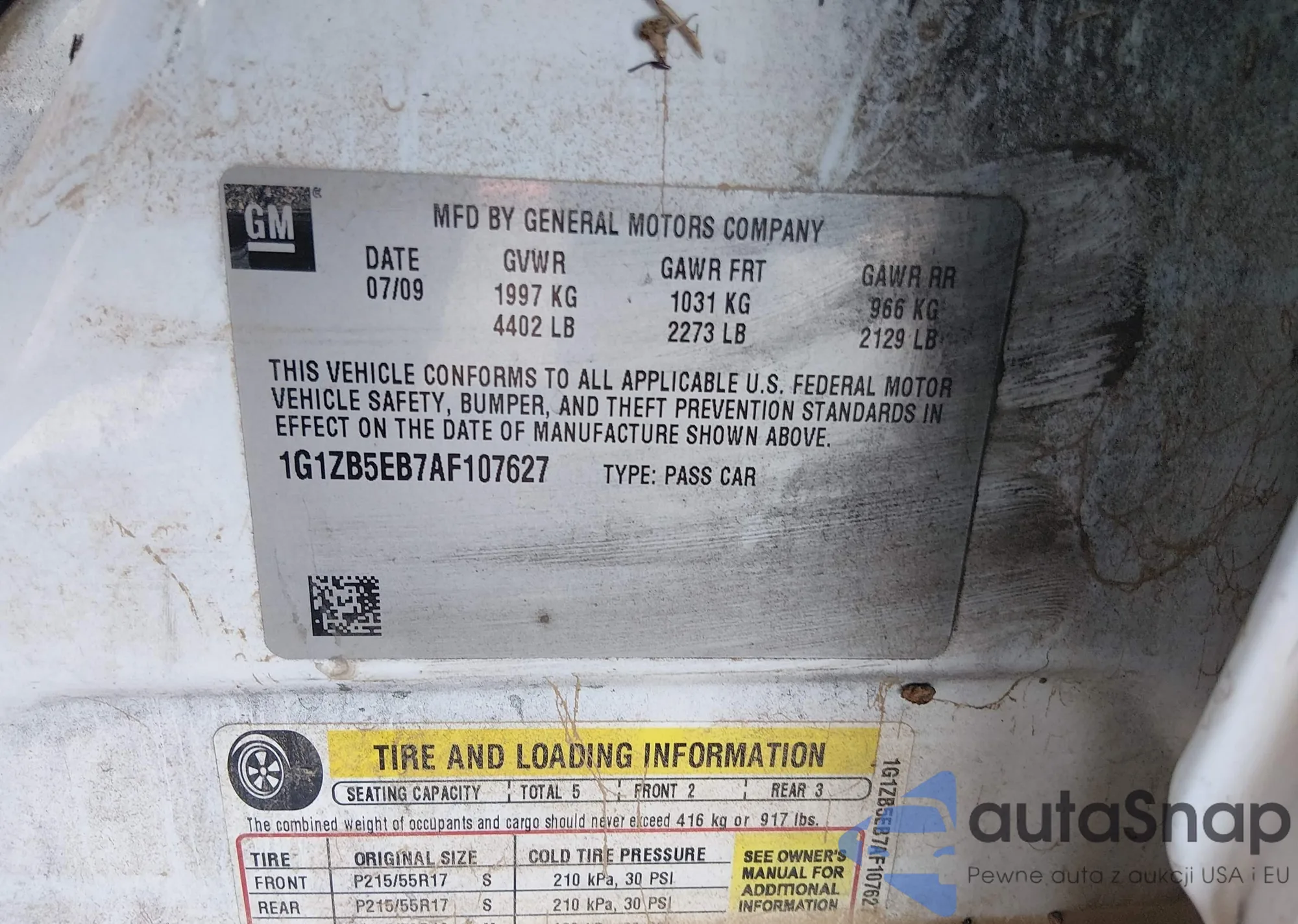 • VIN 1G1ZB5EB7AF107627