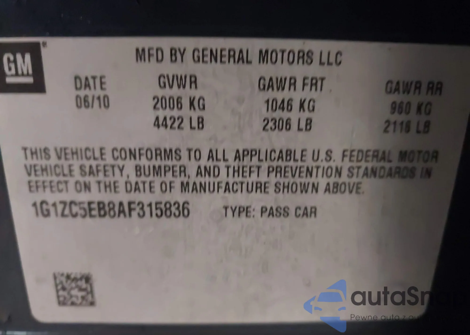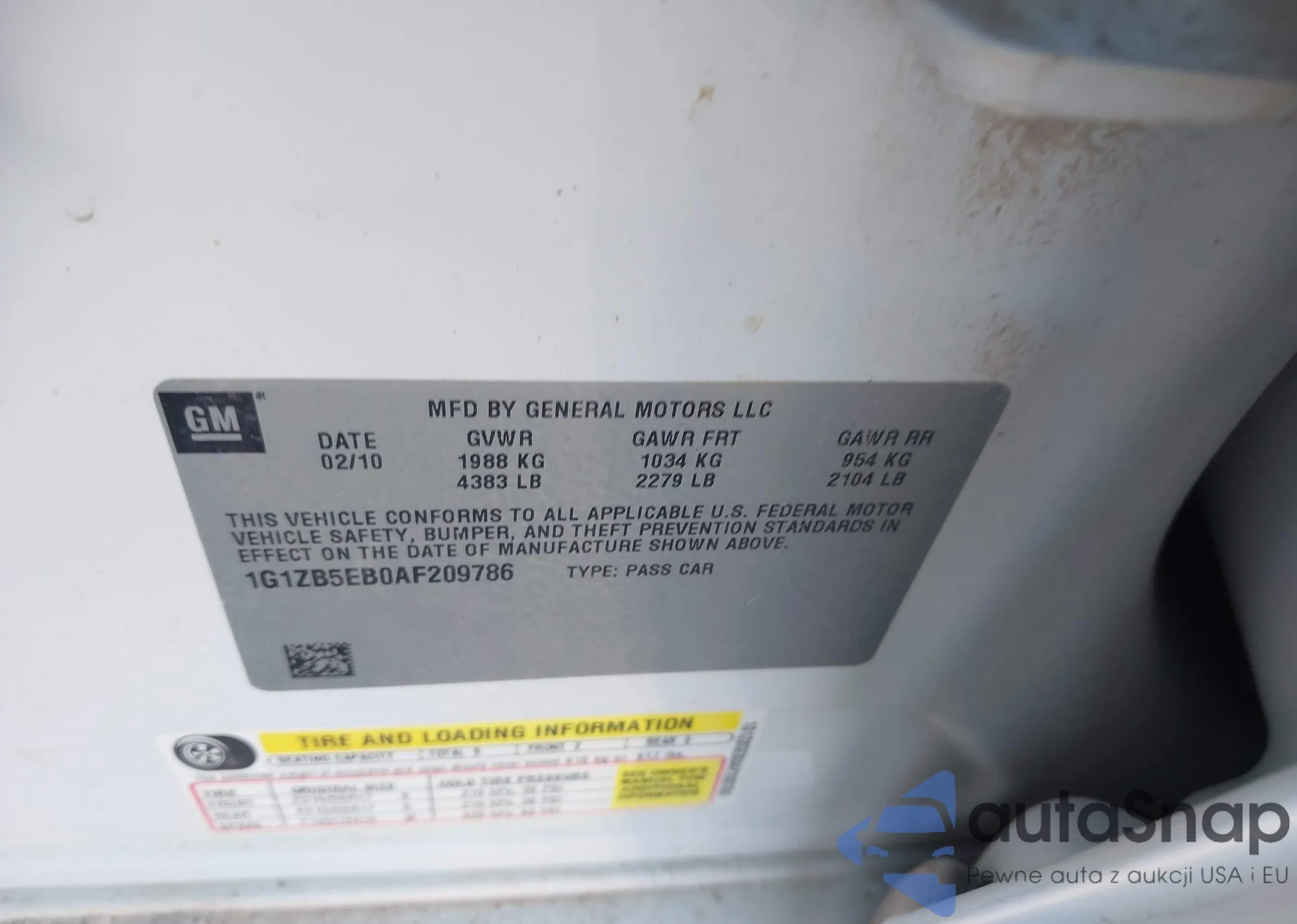 LOT: 44112068 VIN: 1G1ZC5EB8AF315836