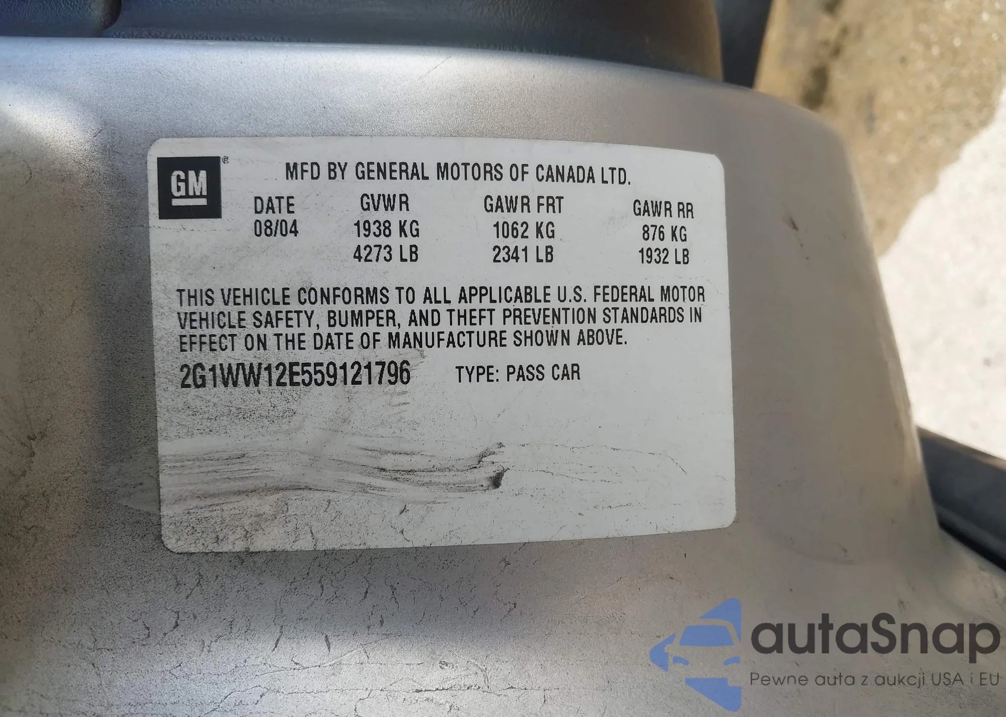 • VIN 2G1WW12E239290476
