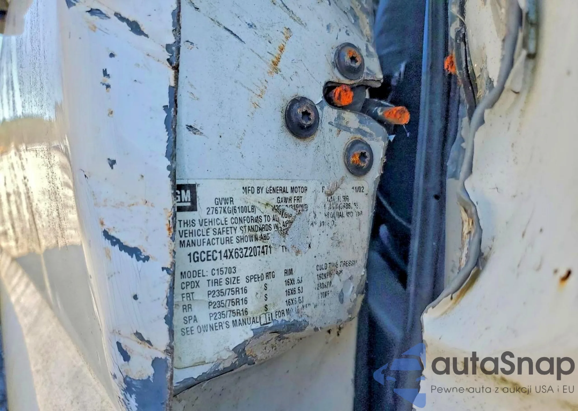 • VIN 1GCEC14X63Z207471