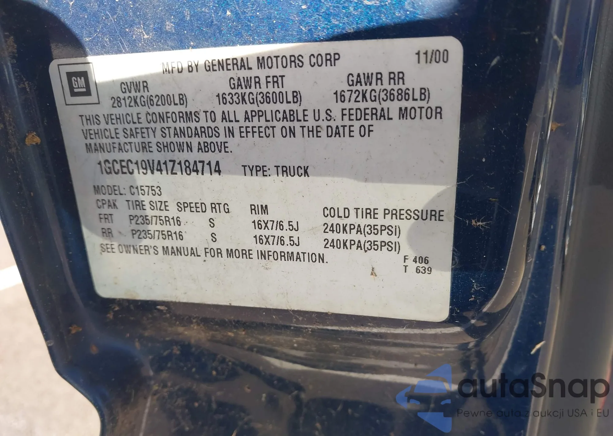 • VIN 1GCEC19V41Z184714