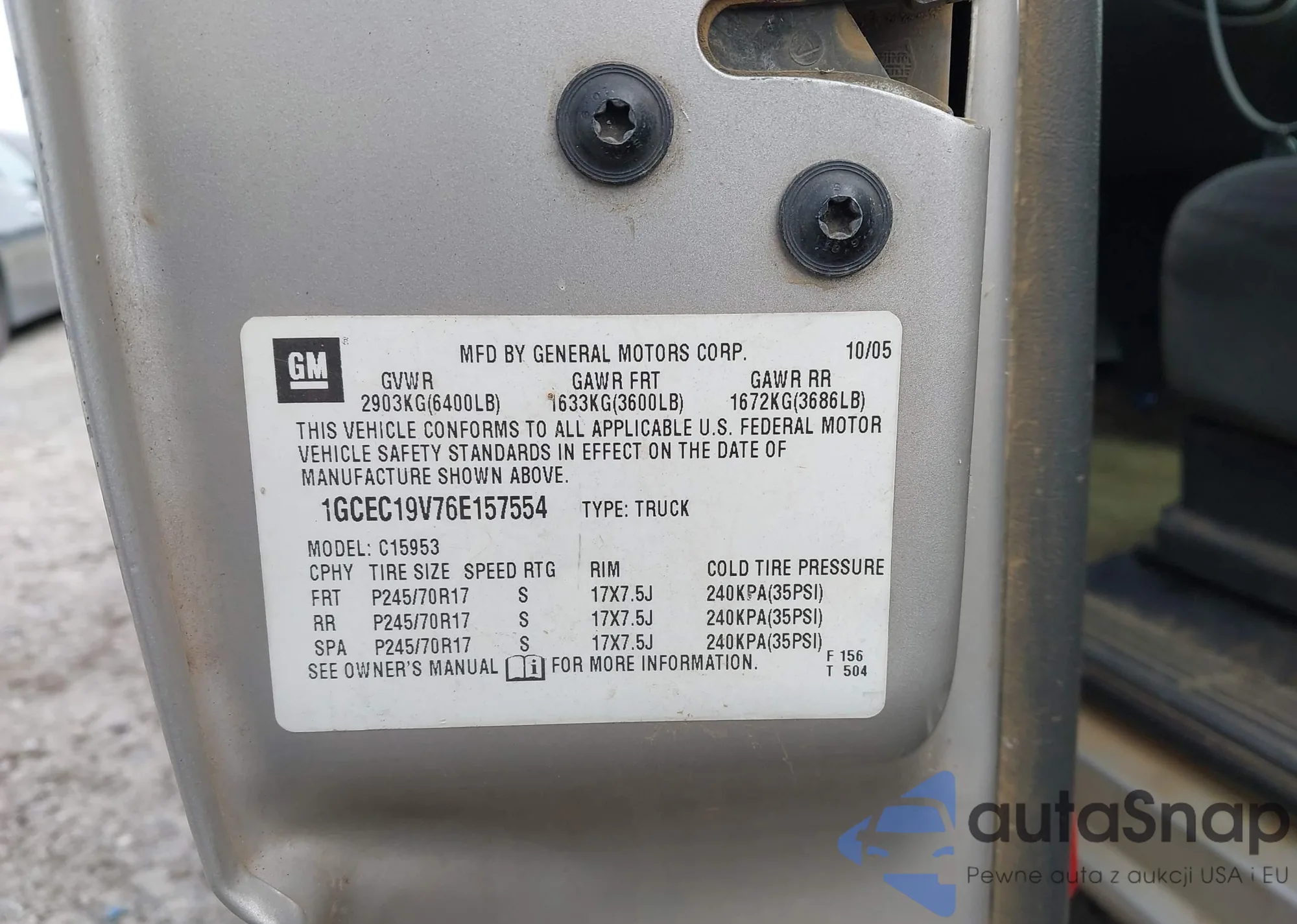 • VIN 1GCEC19V76E157554