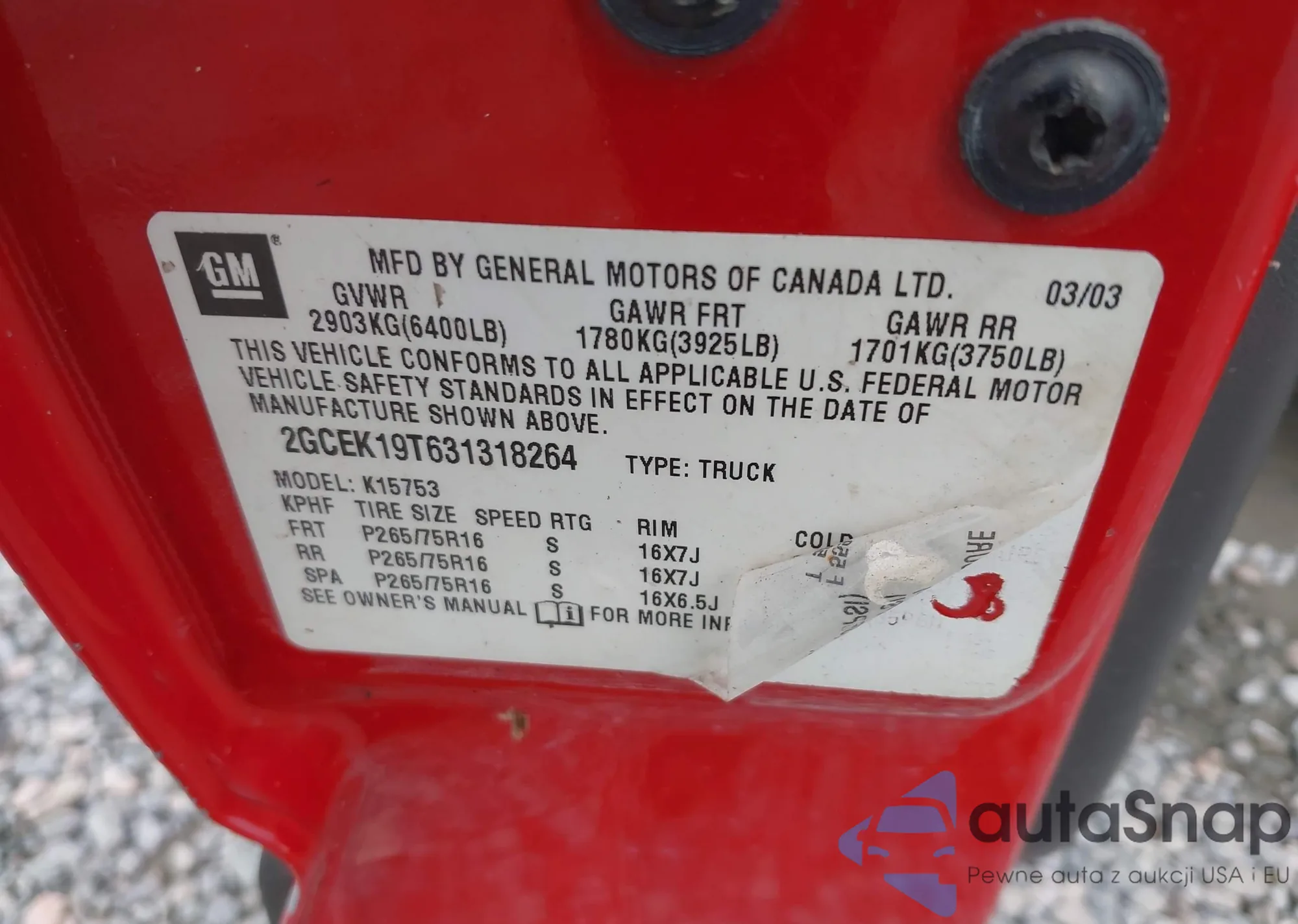 LOT: 43892197 VIN: 2GCEK19T631318264