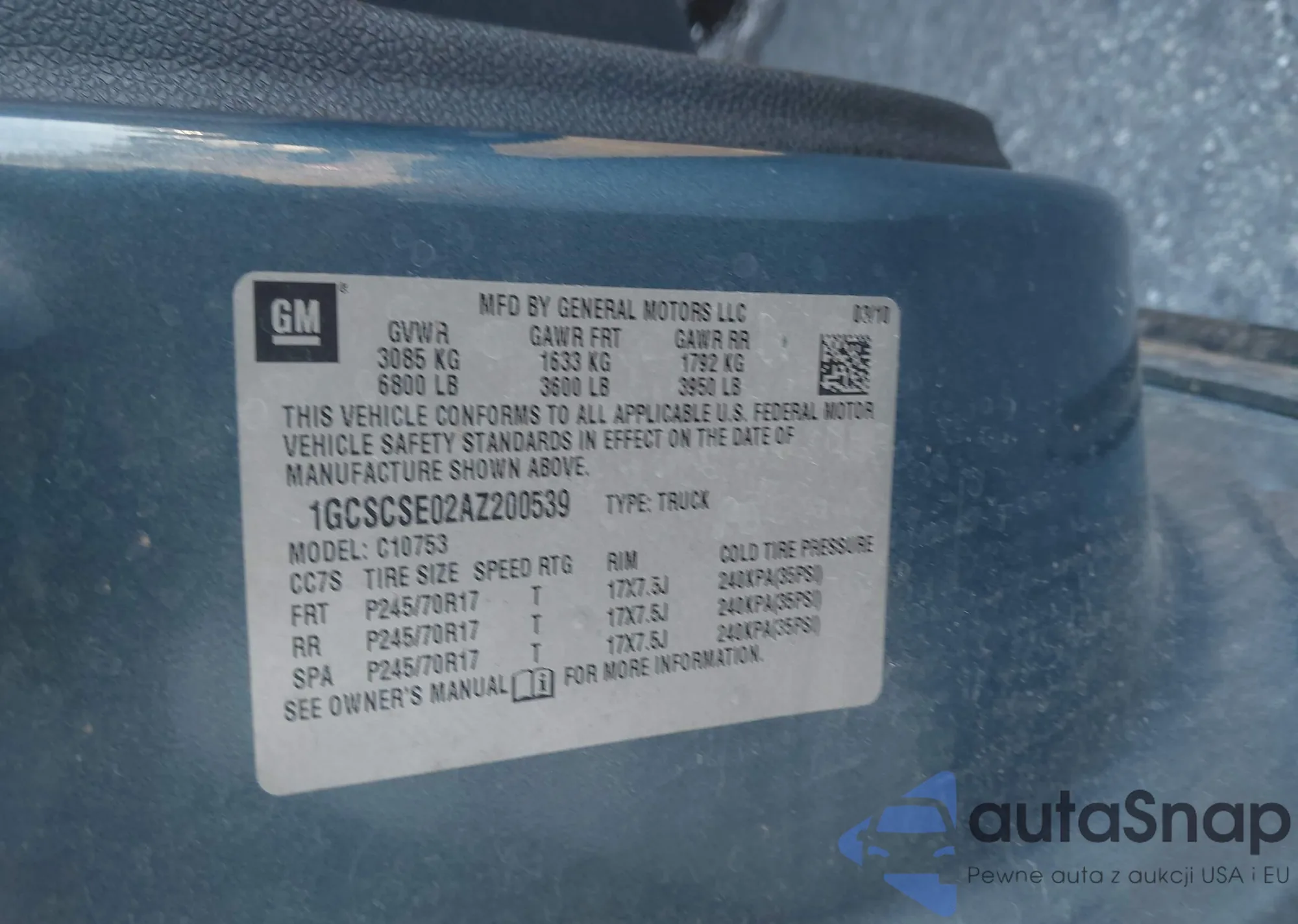 LOT: 44157273 VIN: 1GCSCSE02AZ200539