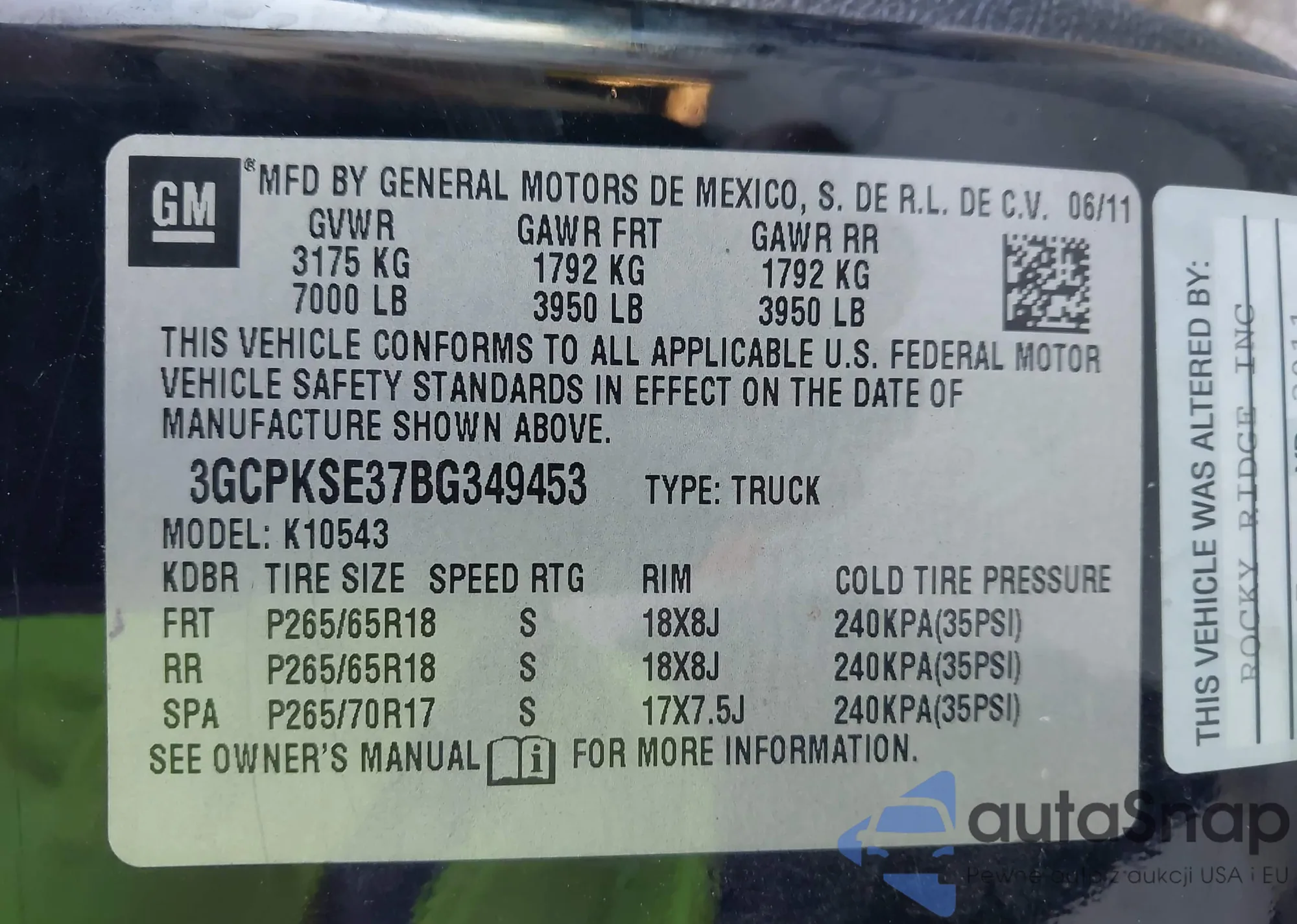 • VIN 3GCPKSE37BG349453